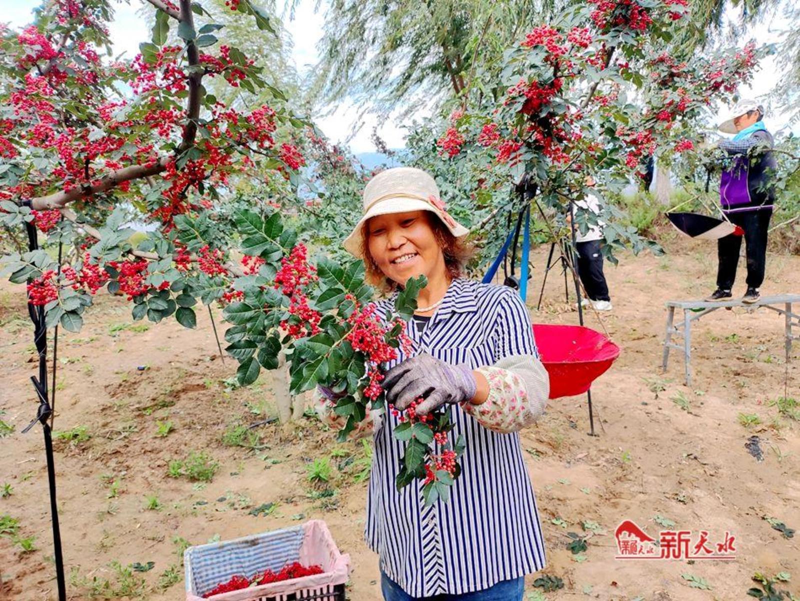 新天水讯 炎炎烈日,骄阳似火,又到了一年花椒成熟季节,武山县鸳鸯镇李山村的椒农们正在忙着采摘、烘干、晾晒花椒,一派丰收景象。