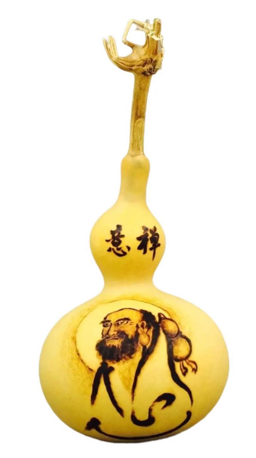 本朴的葫芦,华彩其章;淡雅的烙画,福禄其间。深深浅浅,浓浓淡淡。灵动的葫芦,恍然成瑞,由此而散发出纯真的人间烟火之气。