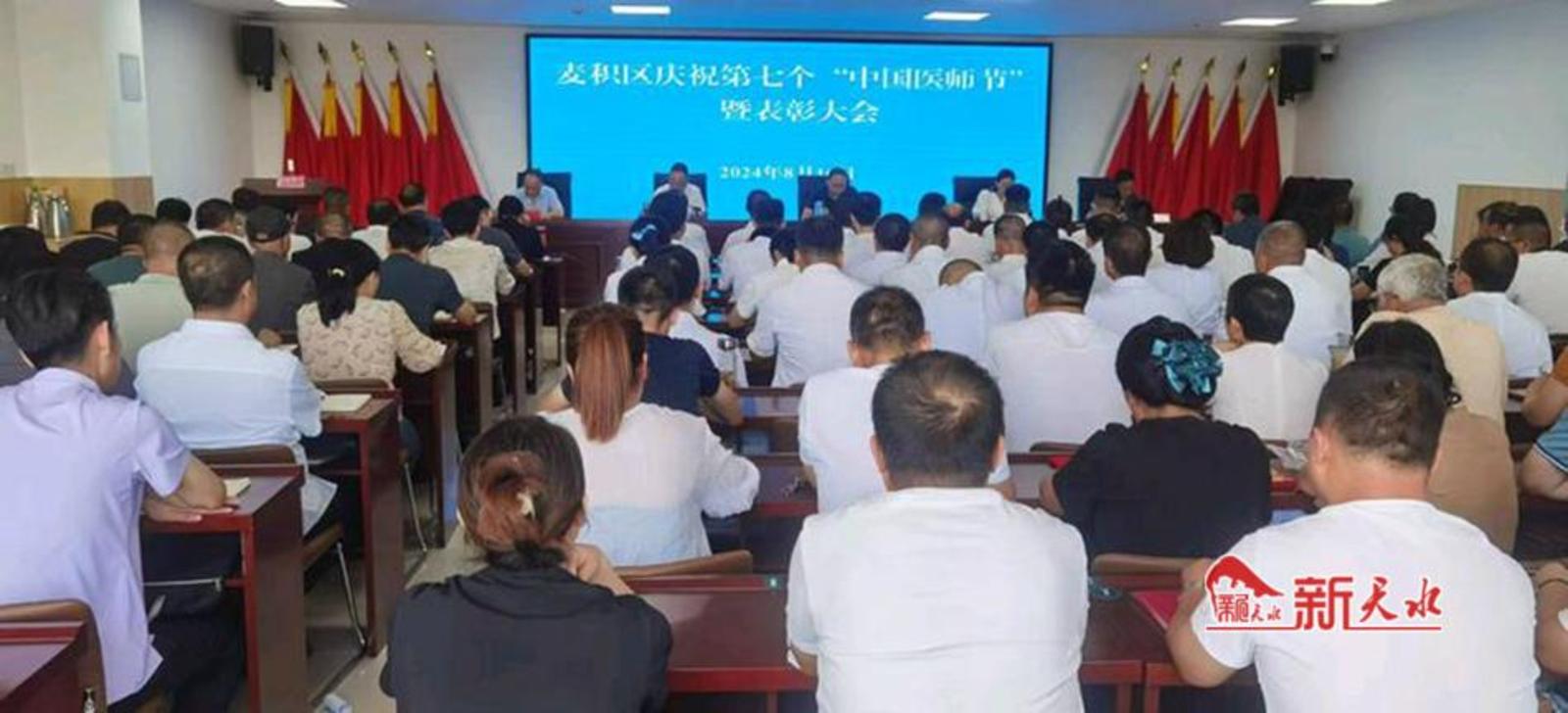 新天水讯 8月19日是第7个中国医师节,今年的主题是“崇尚人文精神,彰显医者仁心”。8月16日,麦积区卫生健康局组织全区卫生健康系统各医疗机构召开庆祝第七个“中国医师节”暨表彰大会。