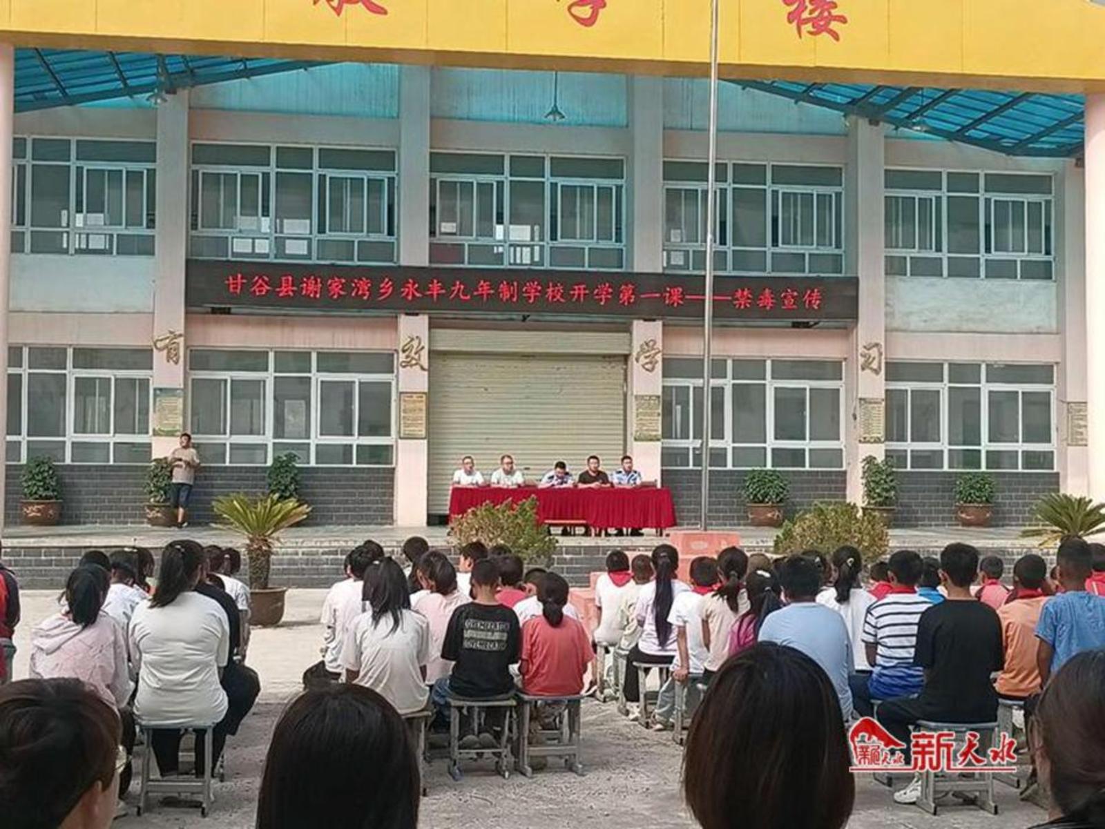 新天水讯 8月28日,甘谷县谢家湾乡联合乡派出所走进辖区学校,把禁毒“开学第一课”移动课堂提前带进学校,为学生们带来了内容丰富的禁毒知识讲座,让学生们迎来元气满满的开学季。