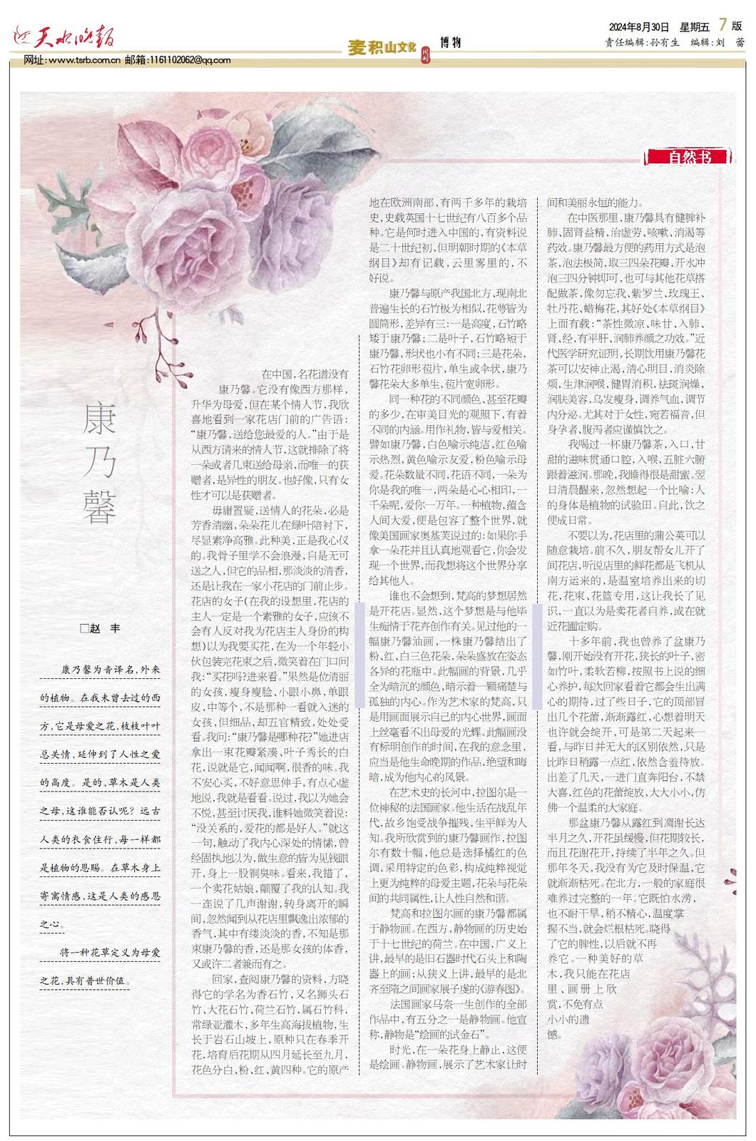 我喝过一杯康乃馨茶,入口,甘甜的滋味贯通口腔,入喉,五脏六腑跟着滋润。那晚,我睡得很是甜蜜。翌日清晨醒来,忽然想起一个比喻:人的身体是植物的试验田。自此,饮之便成日常。
