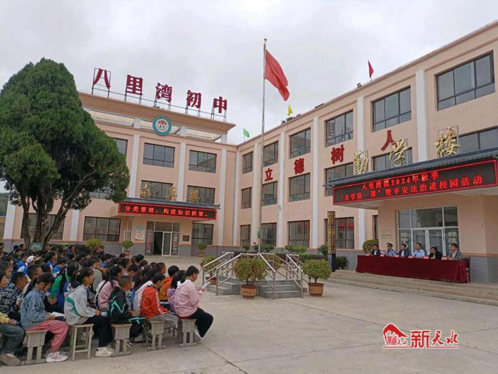 新天水讯 9月6日,甘谷县八里湾镇政府联合派出所、镇司法所到八里湾初中开展了法治宣传进校园活动,以增强学生的安全意识,有效预防各类学校安全事故发生,切实保障广大师生的人身安全。