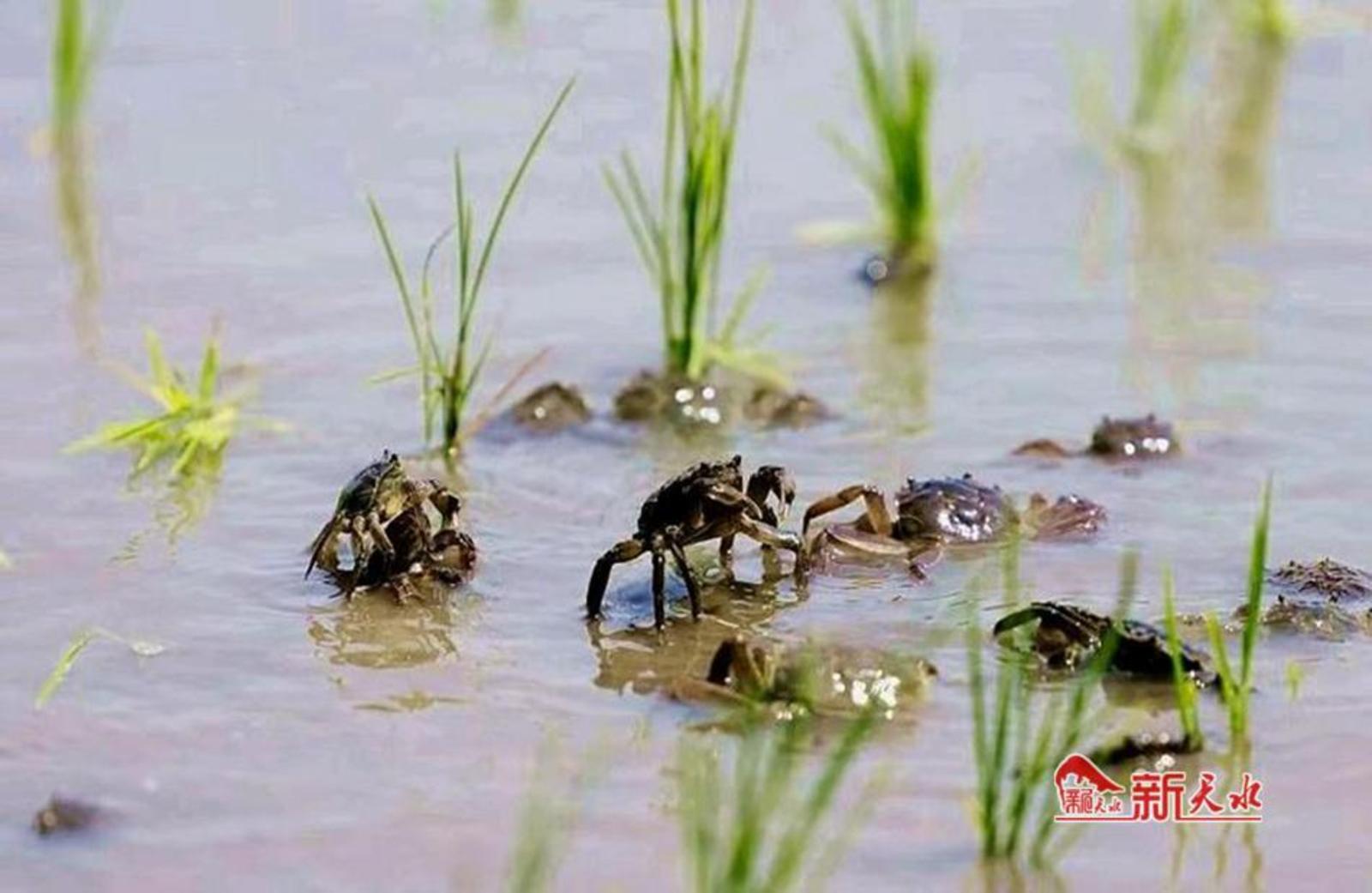 新天水讯 金秋时节,稻美蟹肥。在武山县四门镇湾儿区域田园综合体稻蟹共生基地里,金灿灿的稻田里波浪随风翻滚,正在觅食的稻田蟹三五成群,横行霸道,一派“稻花香里说丰年”的丰收景象。