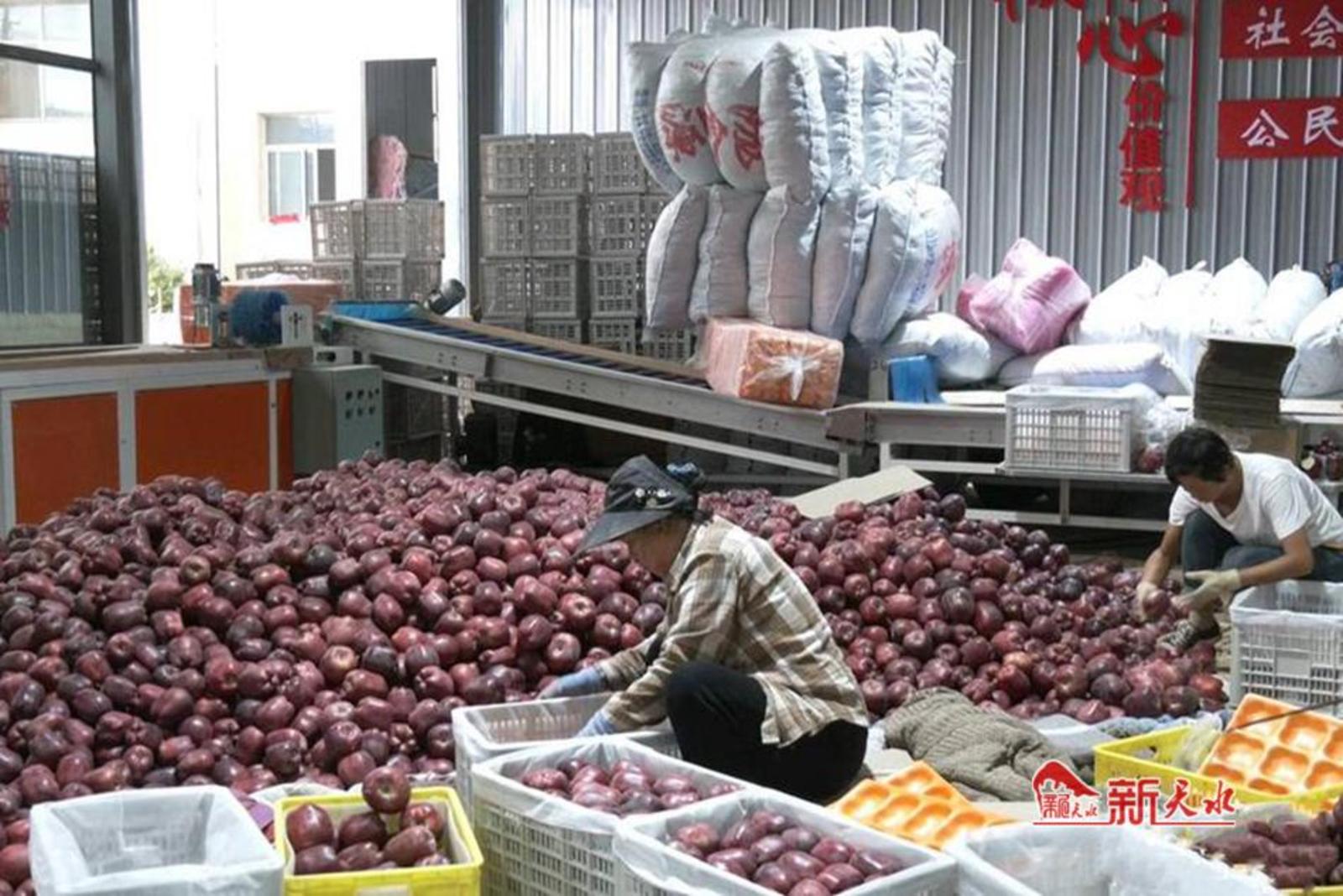 甘谷县得天独厚的自然条件为花牛苹果的生长提供了优越的环境。充足的阳光、适宜的气候和肥沃的土壤,使得这里出产的花牛苹果口感细腻、含糖量高、营养丰富,不少客商也纷纷前来收购。在金川果库的苹果收购点,工人们紧锣密鼓地分拣、包装着刚刚收购的苹果。 山东客商王存光说:“甘谷花牛苹果脆、甜、香、糯,我们一天每个收购点能收30000至50000斤。我们在甘谷有10多个收购点,今年的采购计划是500万斤,我们的工人现在是加班加点的包装,每天都有两辆车在向外运输收购来的苹果。”
