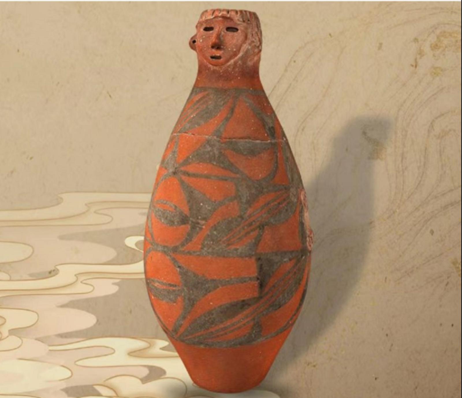 我听见,人头瓶上母亲梦醒八千年时的喟叹;我听见,陶埙的洞孔里穿透八千年时空的苍凉。
