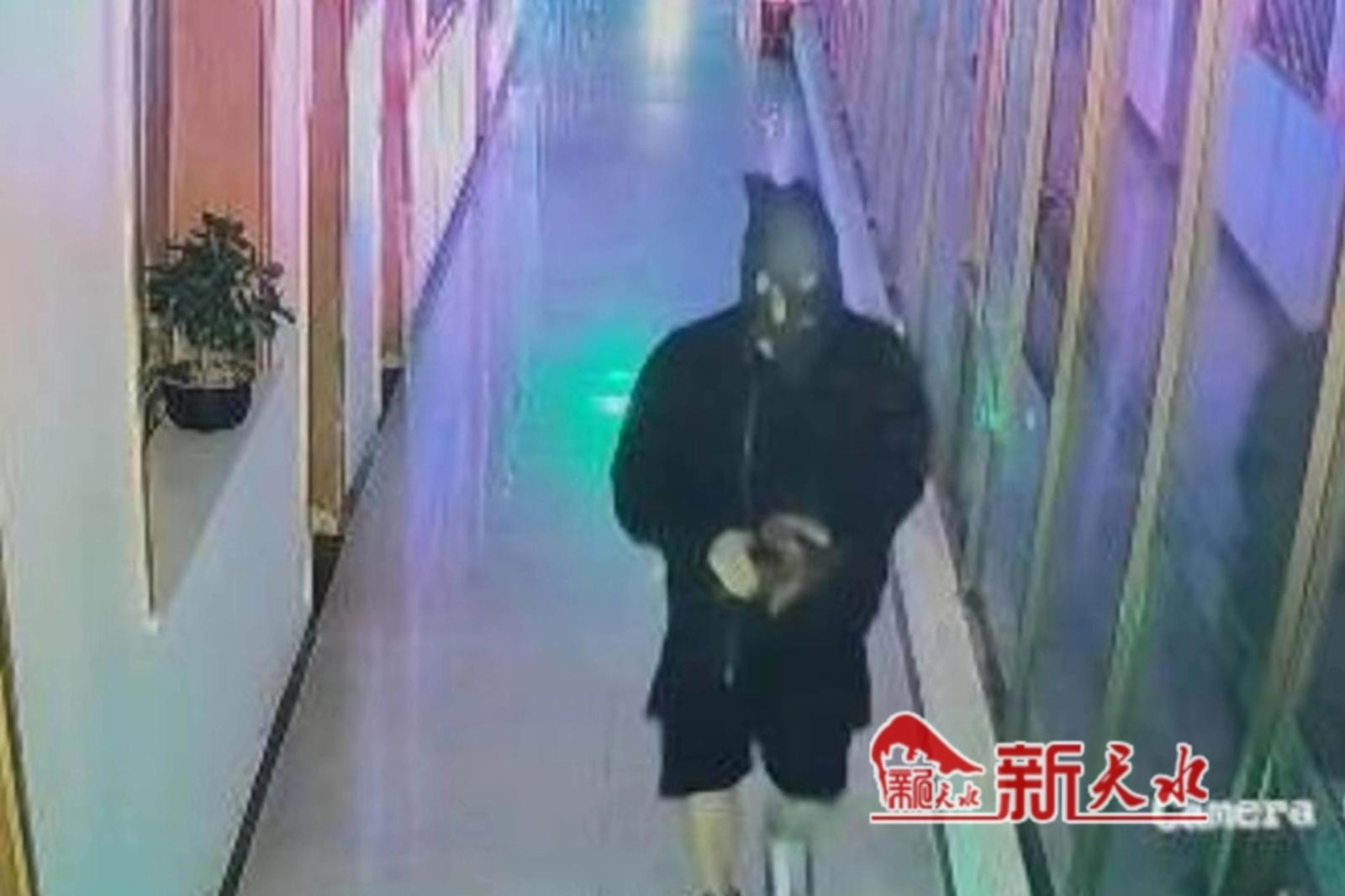 随后,民警立即调取了案发现场的监控,在视频中可以看到,一名“全副武装”的蒙面男子从公司一楼进入,在楼道内到处窥视,最终进入了财务室。