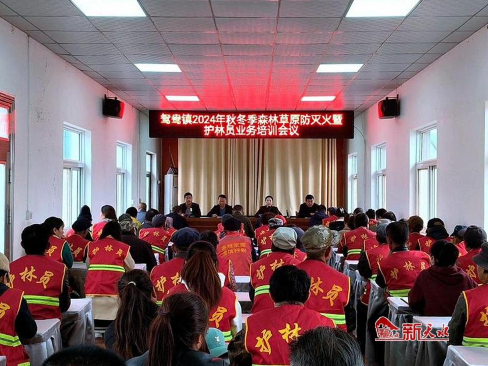 新天水讯 10月18日,武山县鸳鸯镇召开2024年秋冬森林草原防灭火暨护林员业务培训会议。