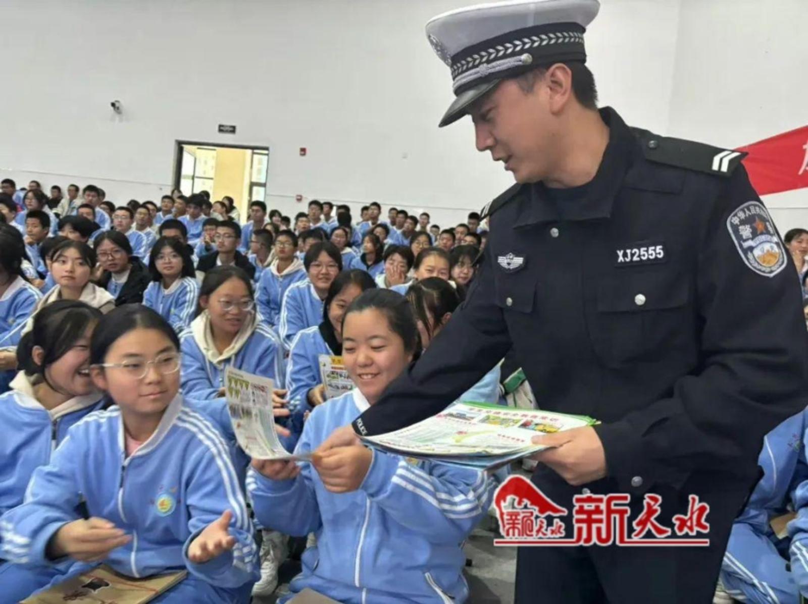 新天水讯【记者蔚军平】近日,秦州公安分局郊区交警大队民警走进天水市第三中学,为高一学生开展电动车交通安全警示教育活动,旨在进一步提高学生们的交通安全意识,有效预防和减少学生道路交通事故的发生,切实筑牢校园道路交通安全防线。