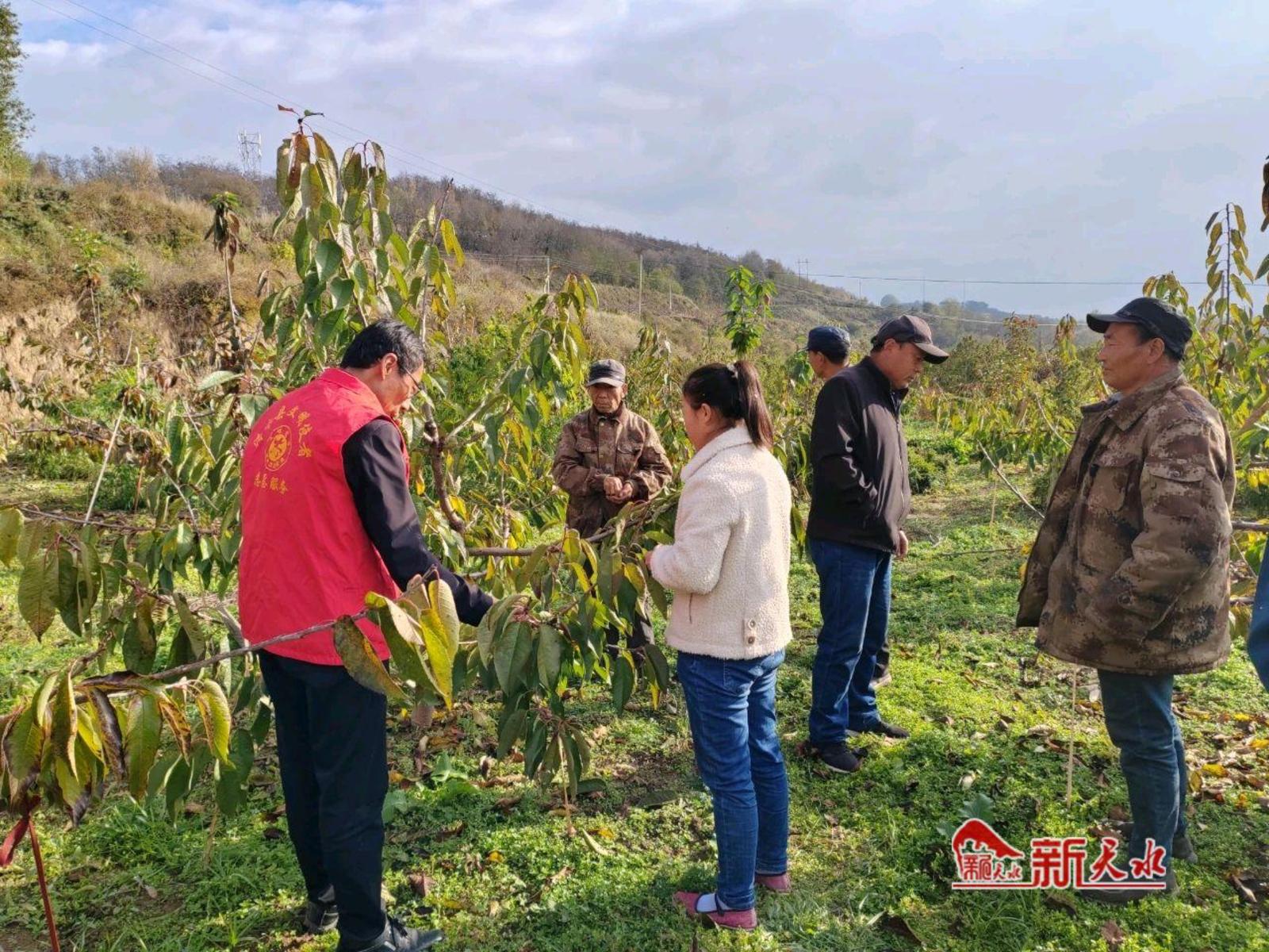 志愿服务+技术培训。充分发挥党员先锋模范作用,积极争当守护粮食安全的“参与者”、为民服务的“志愿者”、乡村振兴的“助力者”。镇村两级组织党员志愿者开展“田间地头管护忙、党员志愿来助力”志愿服务活动,真正将“志愿服务”活动延伸到田间地头,把党课搬到田间地头,把志愿服务送到群众心坎上。同时,由镇农业农村综合服务中心牵头,对接群众需求,送政策、送技术,邀请县乡农技专家,号召“田秀才”“土专家”深入田间地头“把脉问诊”,开展果园种植及管护技术指导和答疑,全力保障农业生产有序推进,助力乡村全面振兴。
