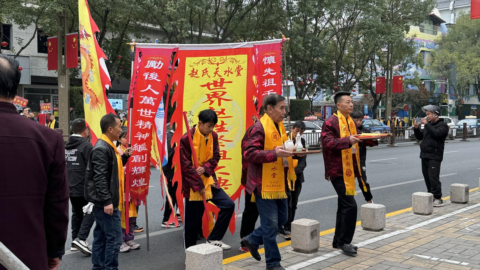 今年参加赵姓祭祖大典的有世界赵姓文史联研总会、世界赵姓文史联研总会上海分会,陕西、兰州、浙江、山西、贵州等多地代表队。
