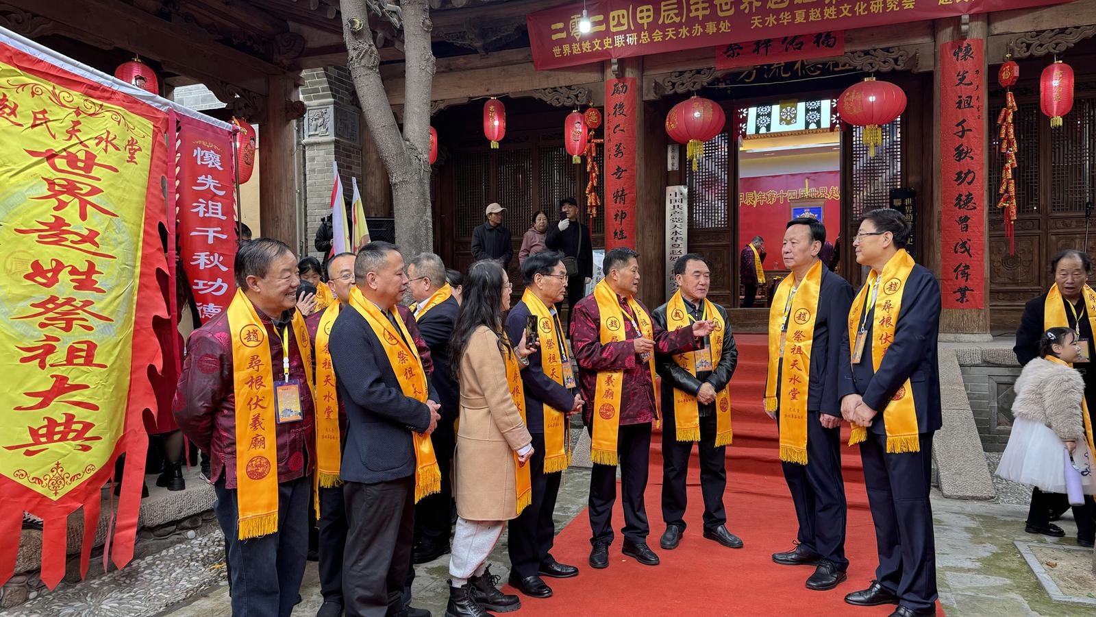 11月10日上午,由世界赵姓文史联研总会天水办事处、天水华夏赵姓文化研究会承办的2024(甲辰)年世界赵姓祭祖大典在秦州区解放路赵氏天水堂举行。来自世界各地的赵氏后裔代表相聚天水,首先在伏羲庙拜谒中华人文始祖伏羲,随后于赵氏天水堂举行了祭祖大会活动,寻亲祭祖,祈福纳祥。