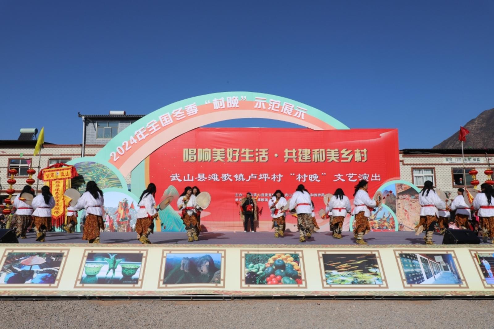 12月15日,武山县结合“村晚”活动,开展“移风易俗专题宣传月”暨文明实践“共享集市”进乡村集中示范活动,现场彩旗飘扬,锣鼓喧天,热闹非凡。表演节目突出武山玉润、武魂等十种特色文化,既有传统戏曲,也有非遗展示,将移风易俗题材融入其中,奏响了“村晚+移风易俗”的精彩乐章。