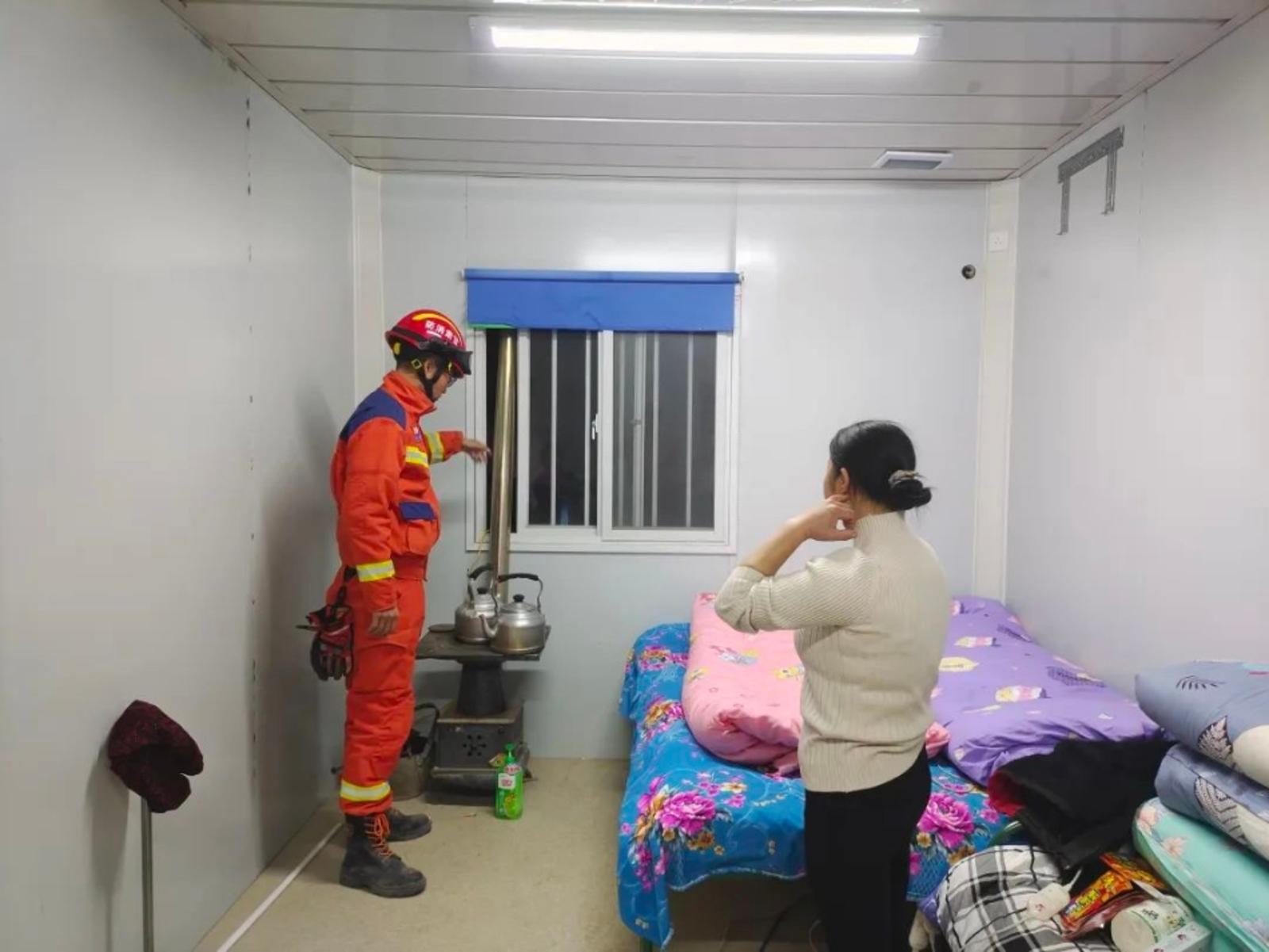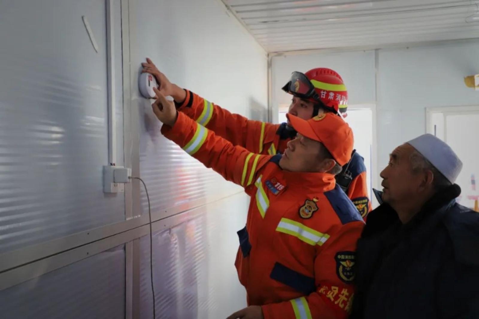 驻勤期间,全体消防救援人员重点围绕8项防火检查内容,开展“敲门入户”行动,对积石山县45个行政村各安置点板房进行全覆盖排查检查,累计检查安置点1985次,检查板房48865间(次),发现火灾隐患24225处,督促整改24188处,组织消防培训1345次,受训28636人,累计更换损坏灭火器8508具、一氧化碳探测器7042个,用实际行动绘就351天的忠诚守护。