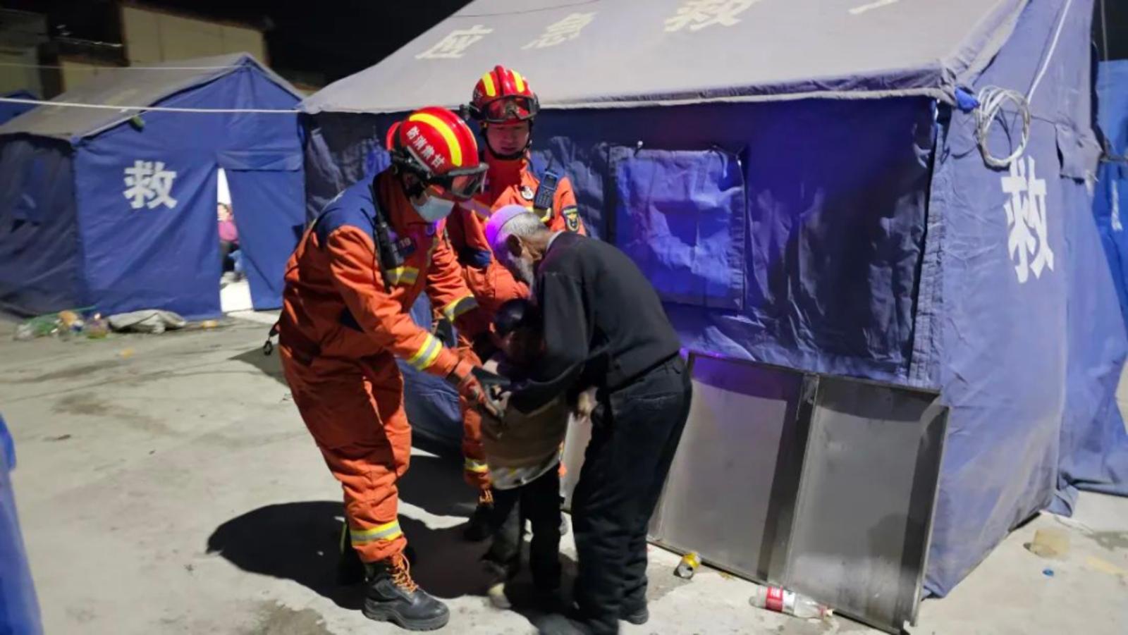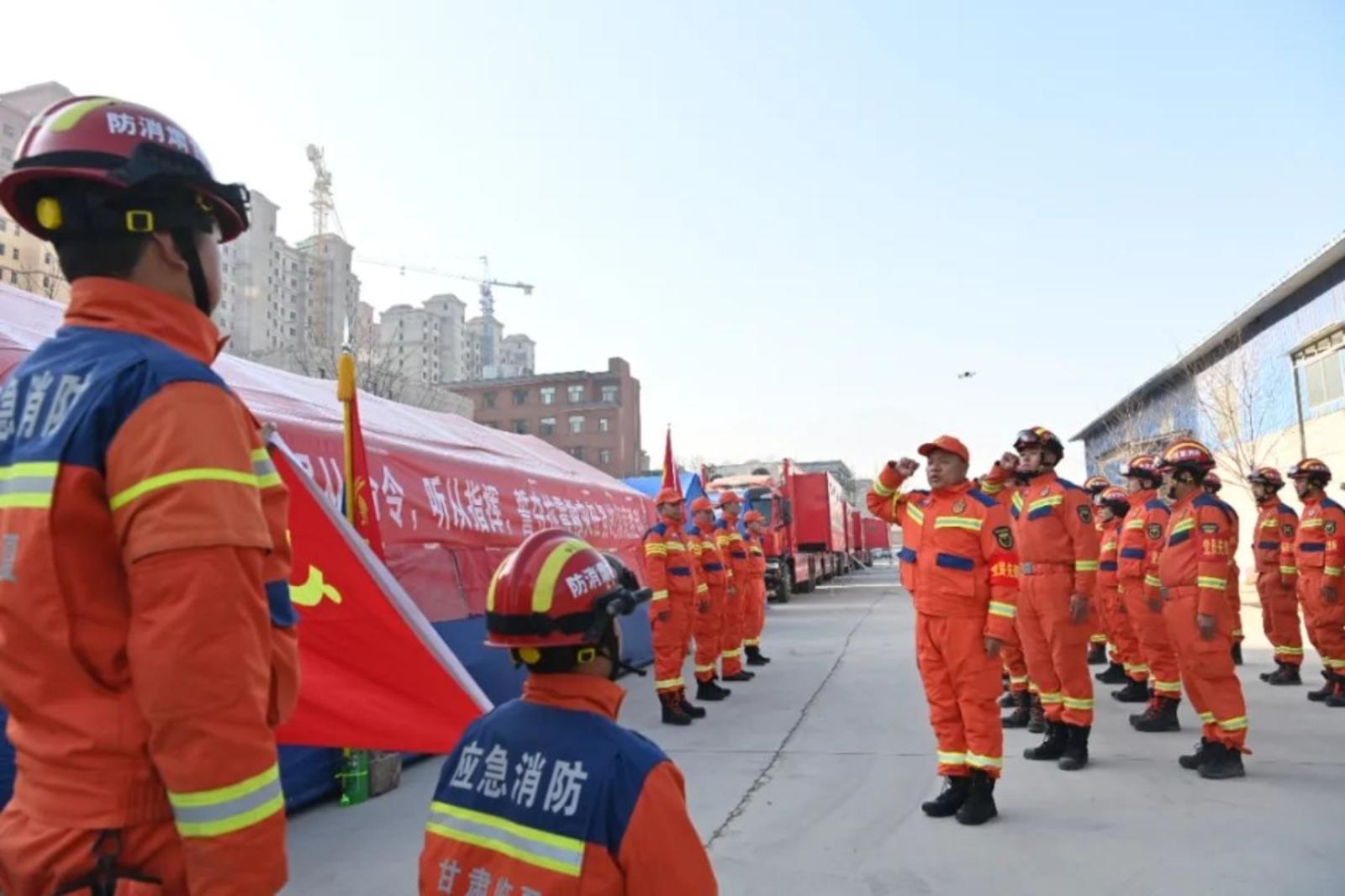 地震发生后,甘肃省消防救援总队立即启动一级响应,调集236车、1130人携14头搜救犬分头并进、挺进灾区。
