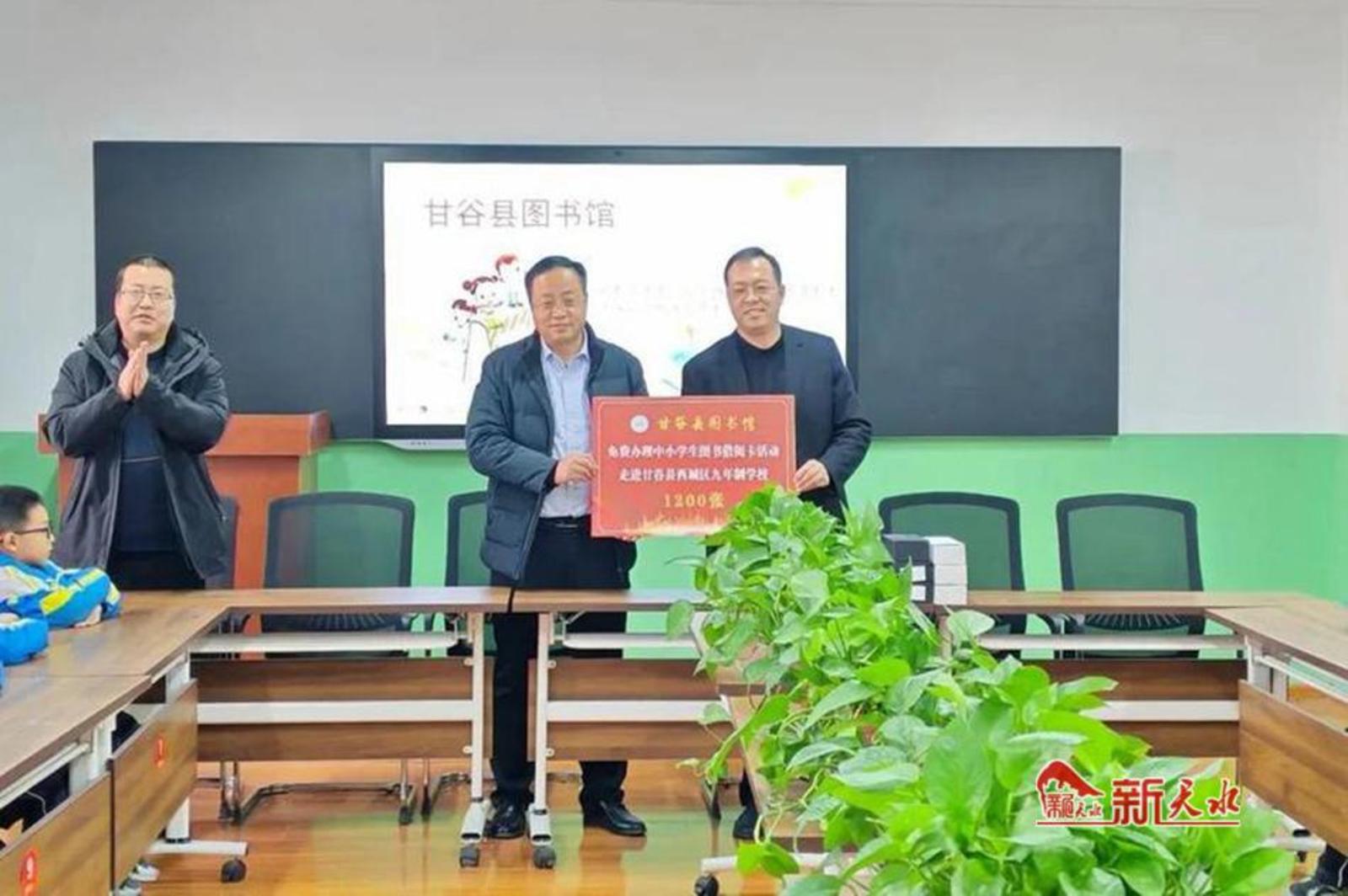 新天水讯【通讯员 康想珍】12月23日,甘谷县图书馆工作人员来到甘谷县西城区九年制学校,为孩子们送去了1200张免费的诚信借阅卡,助力“书香校园”建设。