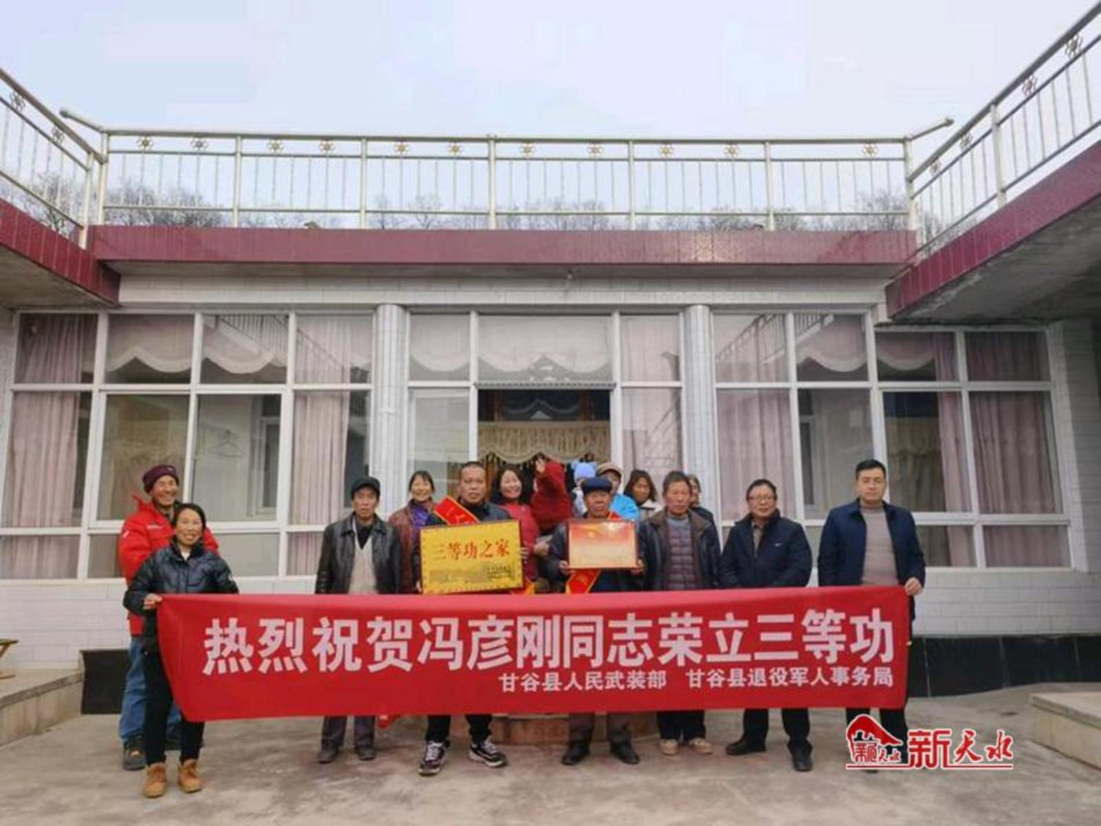 新天水讯 12月25日,甘谷县八里湾镇金岘村冯彦刚的家中格外热闹,甘谷县人民武装部、镇退役军人服务站工作人员为在部队表现优异、荣获三等功的现役军人冯彦刚家属送去立功喜报。