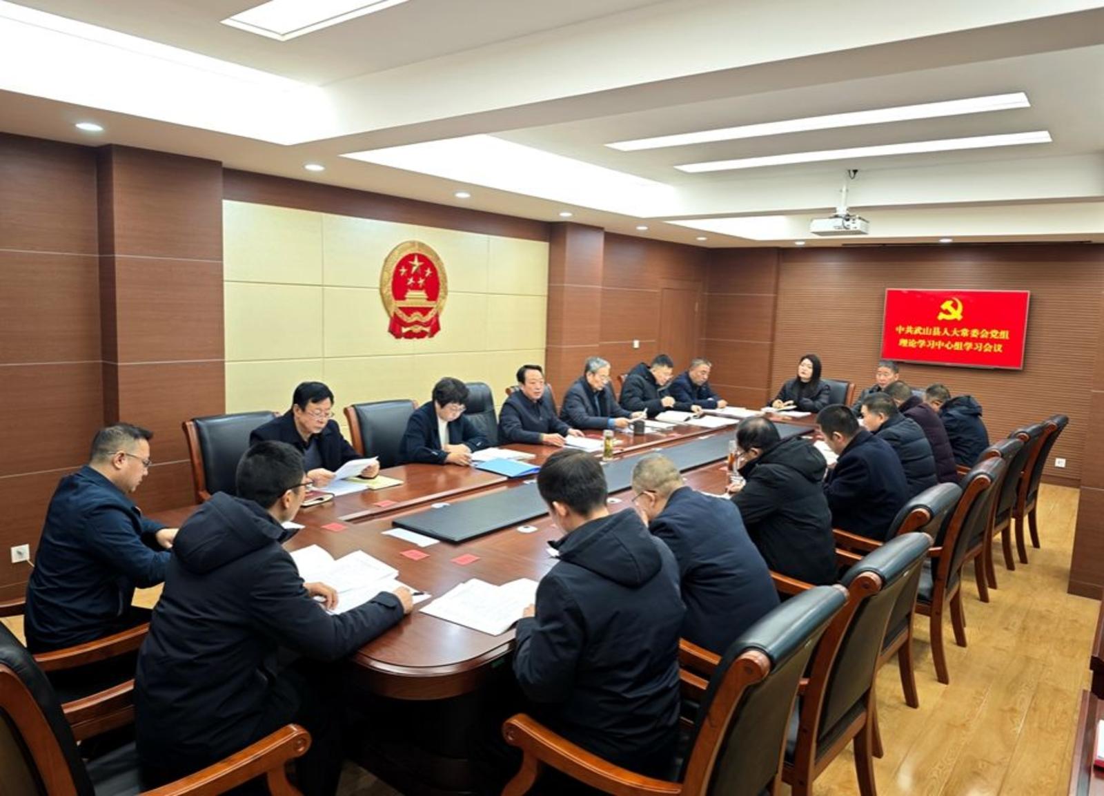 新天水讯 据武山县融媒体中心消息 12月30日,县人大常委会党组书记、主任孙德银主持召开县人大常委会党组理论学习中心组学习会议。县人大常委会党组副书记、副主任李燕玲,党组成员、副主任韩永红、郭海涛、王喜来参加会议。县人大常委会副主任骆育喜,办公室、各工委主任、副主任,人大事务服务中心全体干部列席会议。