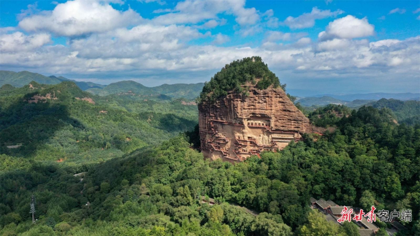 耸立于一片绿海之中的麦积山石窟,风景怡人。(资料图) 新甘肃·甘肃日报记者 丁凯