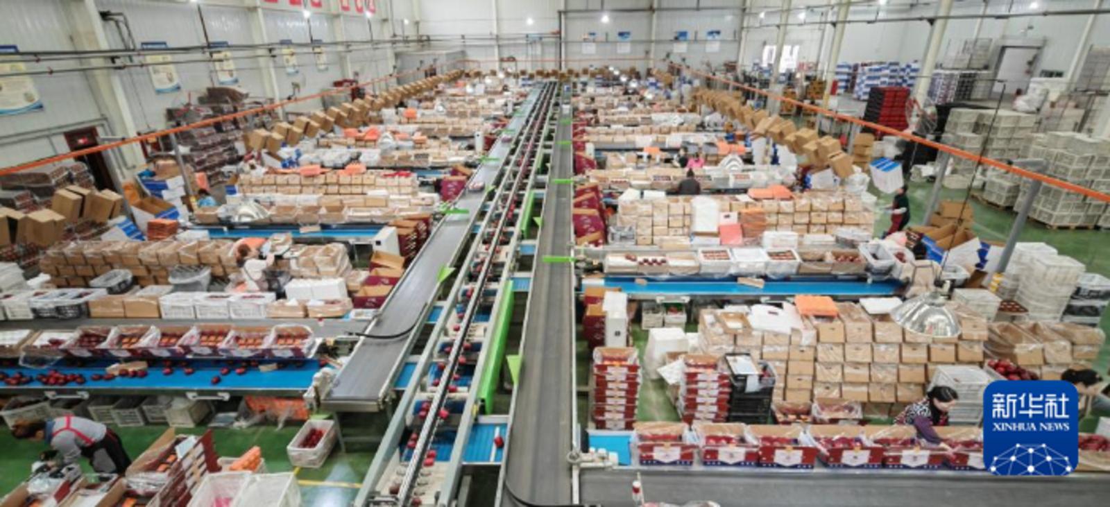 秦安雪原果品有限责任公司的苹果分选生产流水线。