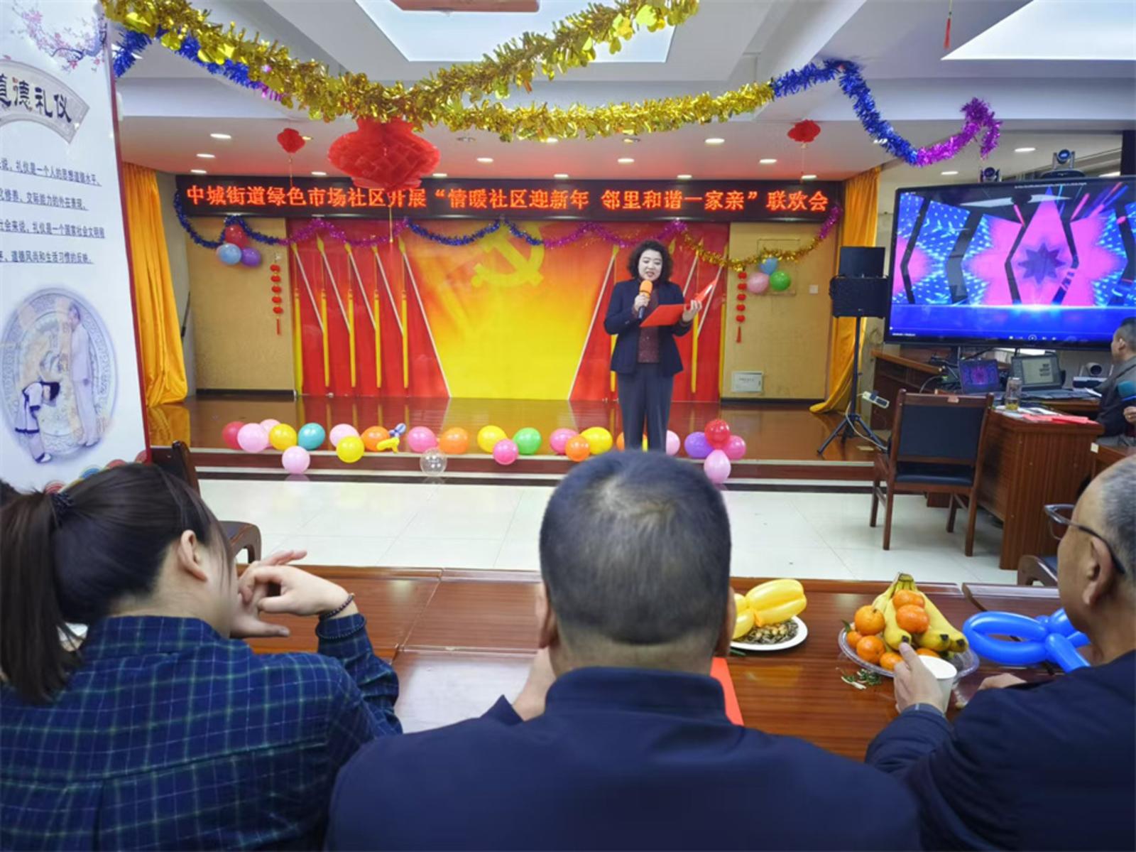 新天水讯 据秦州区融媒体中心消息12月30日,中城街道绿色市场社区举办“情暖社区迎新年 邻里和谐一家亲”元旦庆祝活动,邀请街道领导干部、社区党员代表、退役军人、企业退休人员以及居民代表70余人参与,活动现场热闹非凡。