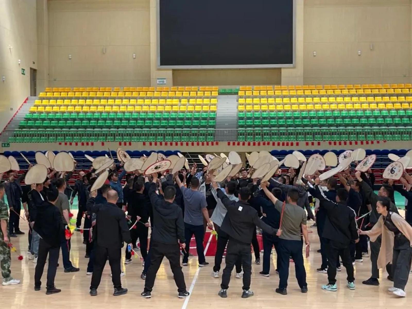 付泓是武山人,家乡情结很重,而且他对羊皮鼓舞在内的甘肃民间舞蹈有独到的见解和认知,县上便邀请他创排一套适合大型场地和舞台演出的旋鼓舞,并抽了八十名退役军人,由县文旅局(县文化馆)组织搭建了演出班底。付泓带领他的创作团队迅速投入创排工作,在创作理念上坚持继承、创新、发展的原则,在传统旋法的基础上注入现代理念,“让古乐和新声合鸣,让传统和现代对话”,经过反复打磨和旋鼓队员夜以继日地辛勤付出,排出了一套既适合传统场地演出又适宜于舞台表演的旋鼓舞,同时刘宗创作音乐,配上了鼓点铿锵、节奏鲜明的伴奏,使整场旋鼓舞显得气势宏大、震天撼地,古朴且有“原始野味”的服饰愈发显示出武山旋鼓舞的古韵悠悠,与具有现代元素的音乐鼓点完美契合,作品取名《远古的呼唤》。文化馆负责人和专门负责排练队伍的人员,始终在现场,全面协调沟通,全力协助创排。鼓破百面,汗流千寻,扇鼓赋新韵,闪耀新征程。