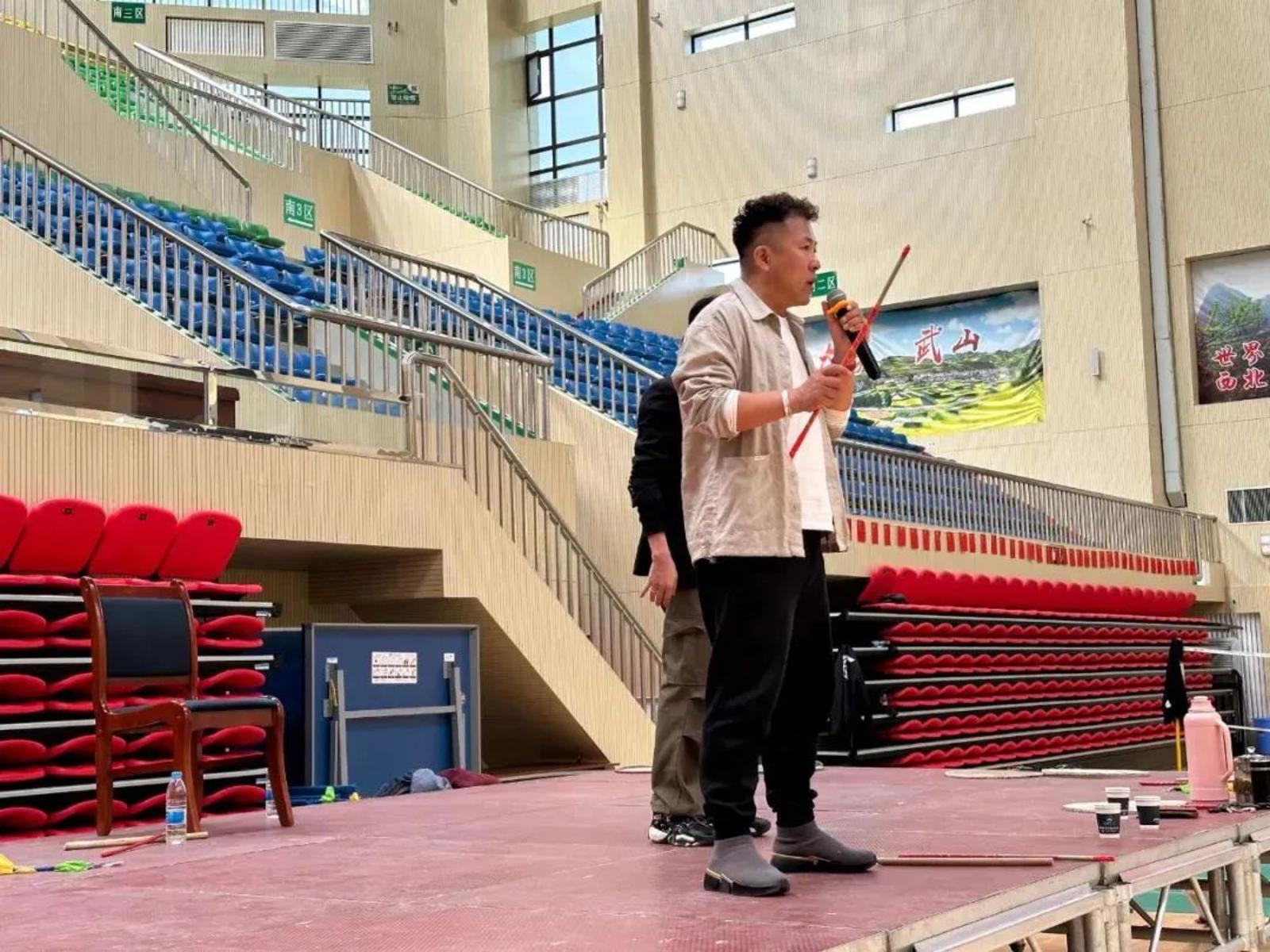 2024年五一期间,一直想创作武山旋鼓舞作品的付泓,相约音乐创作老师刘宗和深圳的舞蹈老师曼淑、湖南的舞蹈编导杨谨平老师走进武山采风,历时三天,他们先后采访了武山旋鼓舞国家级传承人戴三海、礤石川旋鼓者,了解了羊皮鼓的渊源和现状,独特的地理环境造就了武山渭河南北生活的差异,旋鼓舞“南文北武”的鲜明风格,一文一武的个性化表达形成了羊皮鼓独有的魅力。