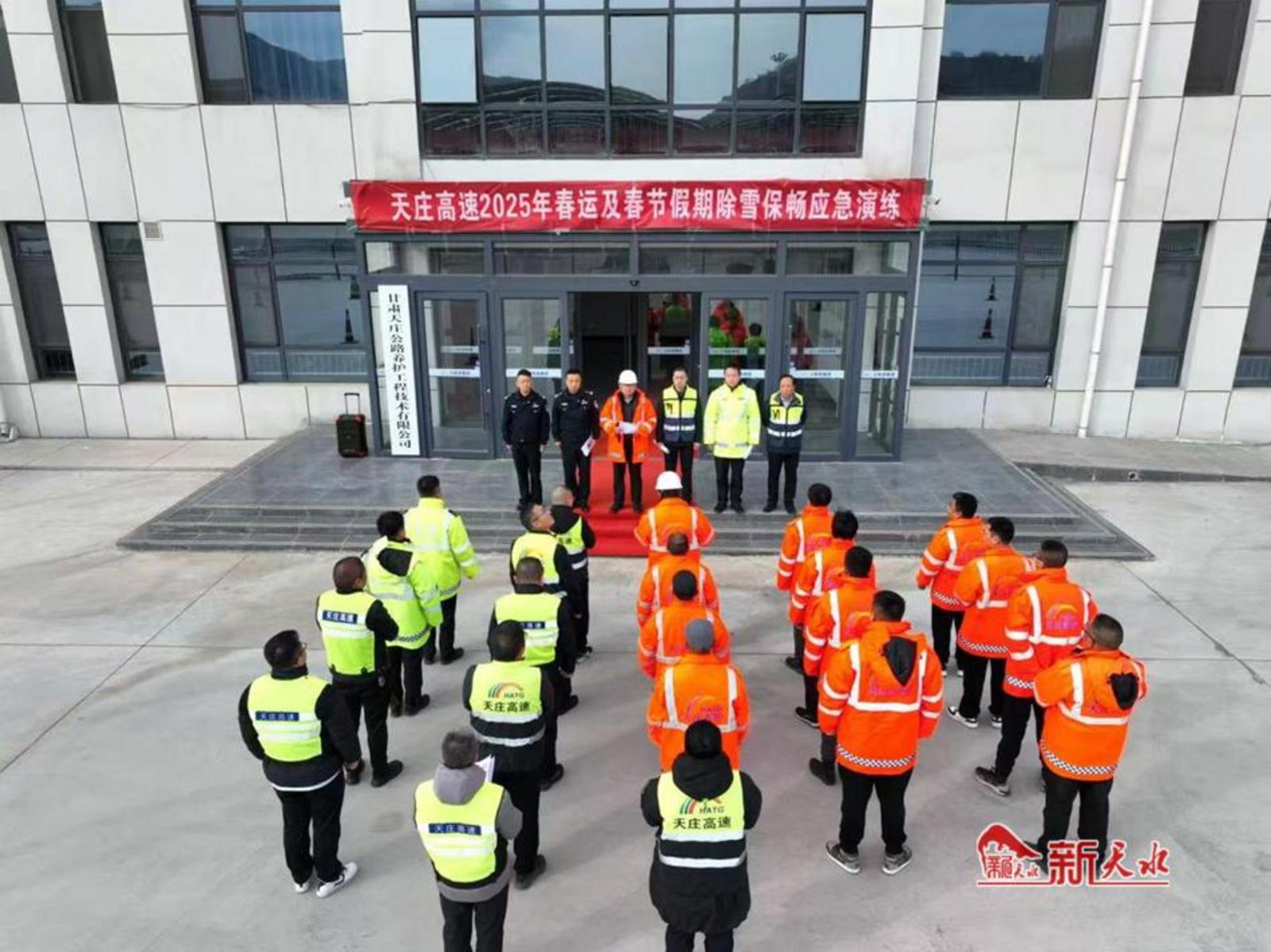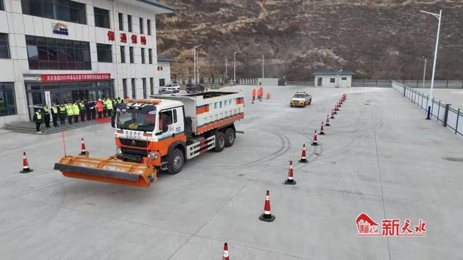 新天水讯 为切实保障春运期间高速公路的安全畅通,近日,甘肃公航旅天庄高速公路管理有限公司联合甘肃省高速公路路政执法总队清水大队及其他“一路四方”单位进行了实战化的除雪保畅演练。
