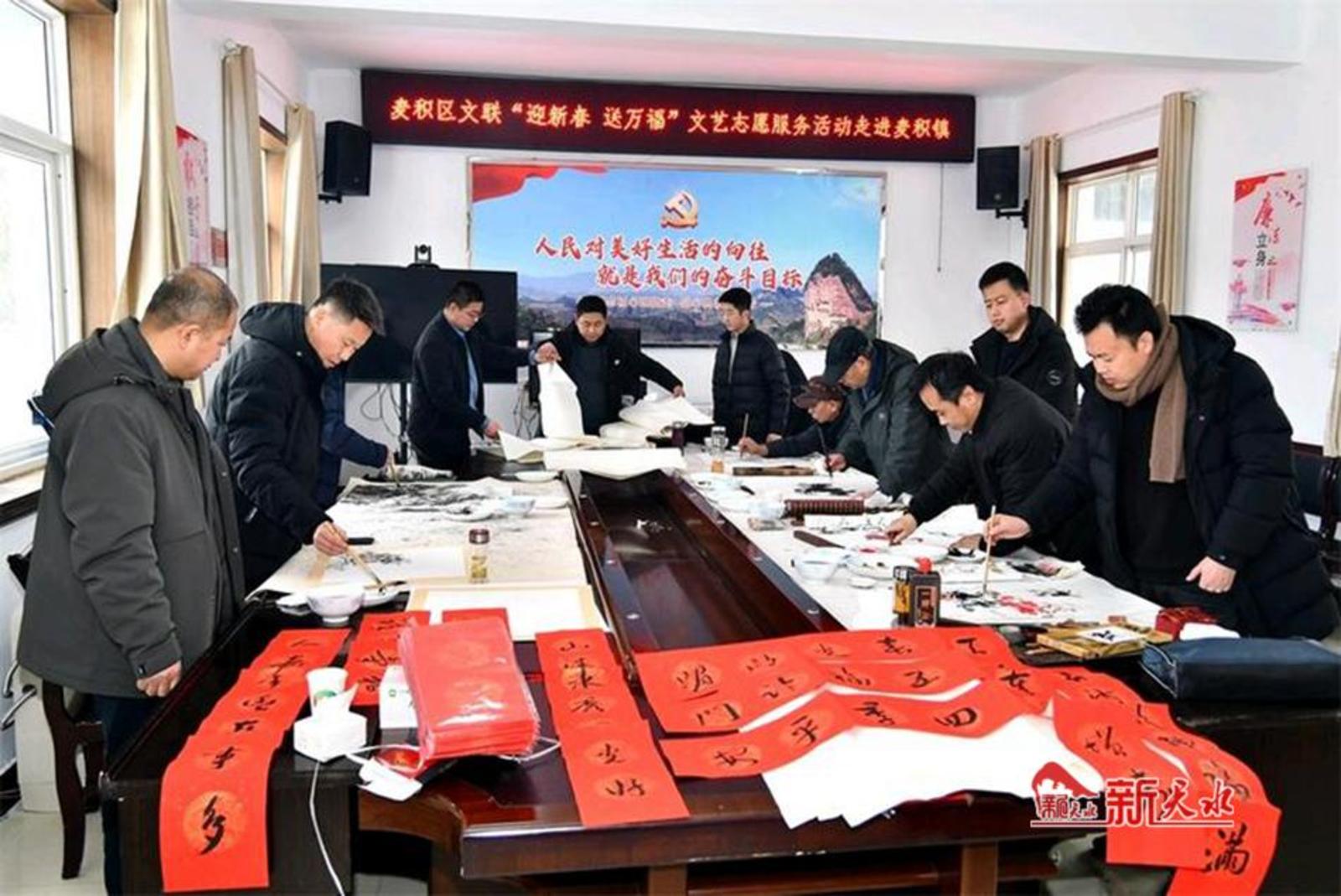 新天水讯【特约通讯员 窦耀辉】1月17日,麦积区文联组织10多位书画艺术师走进麦积镇,深入开展“迎新春 送万福”书画交流暨“四百”主题文艺志愿服务活动,为麦积镇广大干部群众送去了丰盛的“精神年货”,推动“四百”主题活动走深走实。