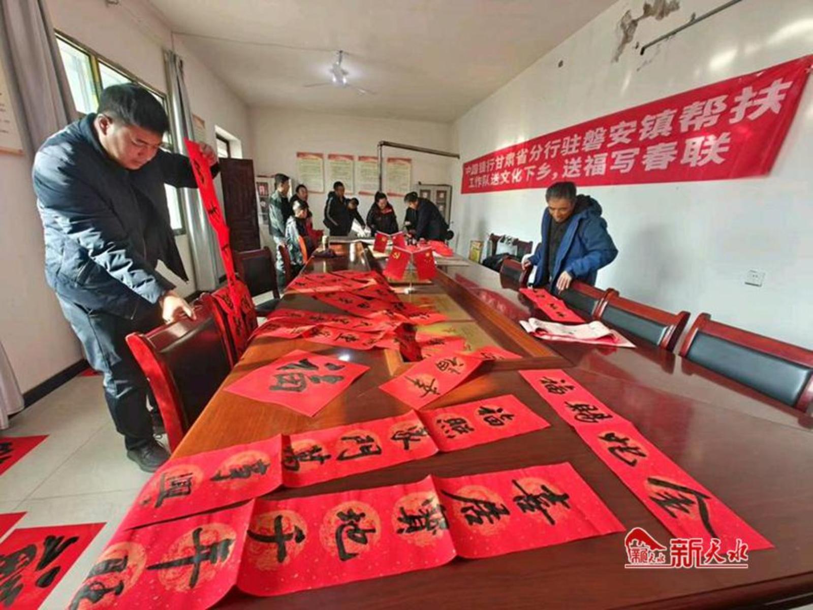 新天水讯【通讯员 张子义】新春临近,年味渐浓。连日来,中国银行甘肃省分行驻磐安镇帮扶工作队开展了送文化下乡活动,为广大群众写对联、书福字、送祝福,营造了喜庆、欢乐、祥和的节日氛围,共同迎接新春佳节的到来。
