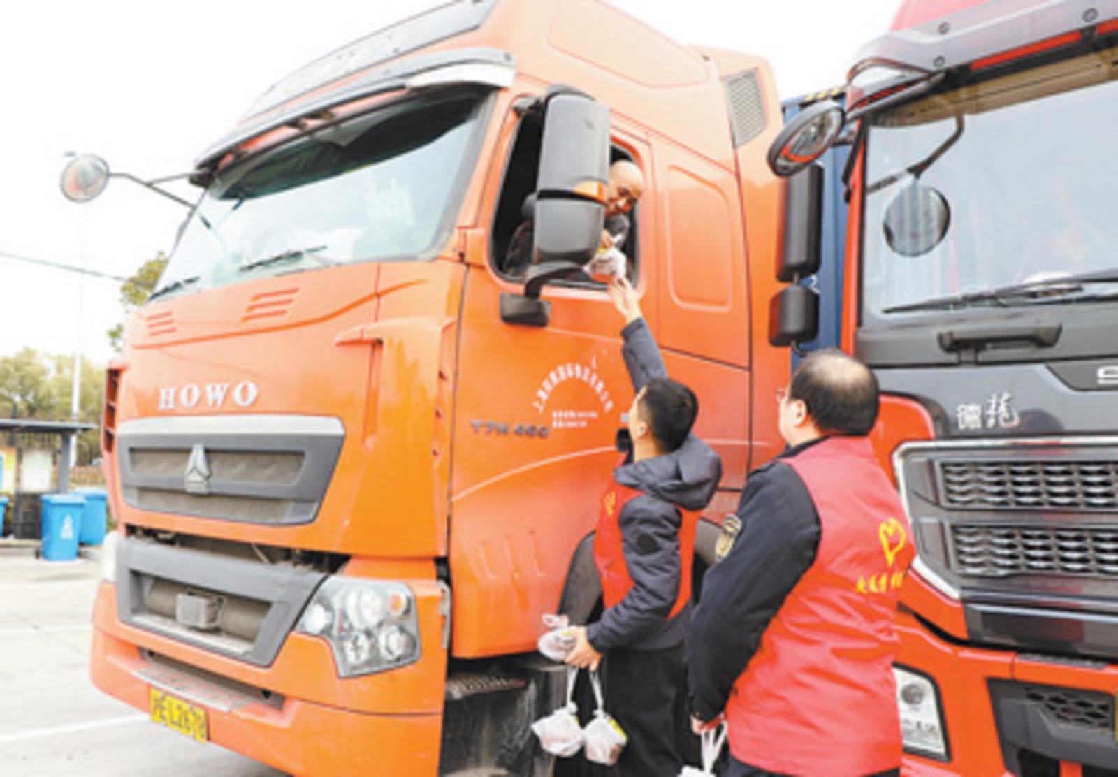 江苏省太仓市货车司机党群服务中心,志愿者为货车司机发补给品。周 洁摄