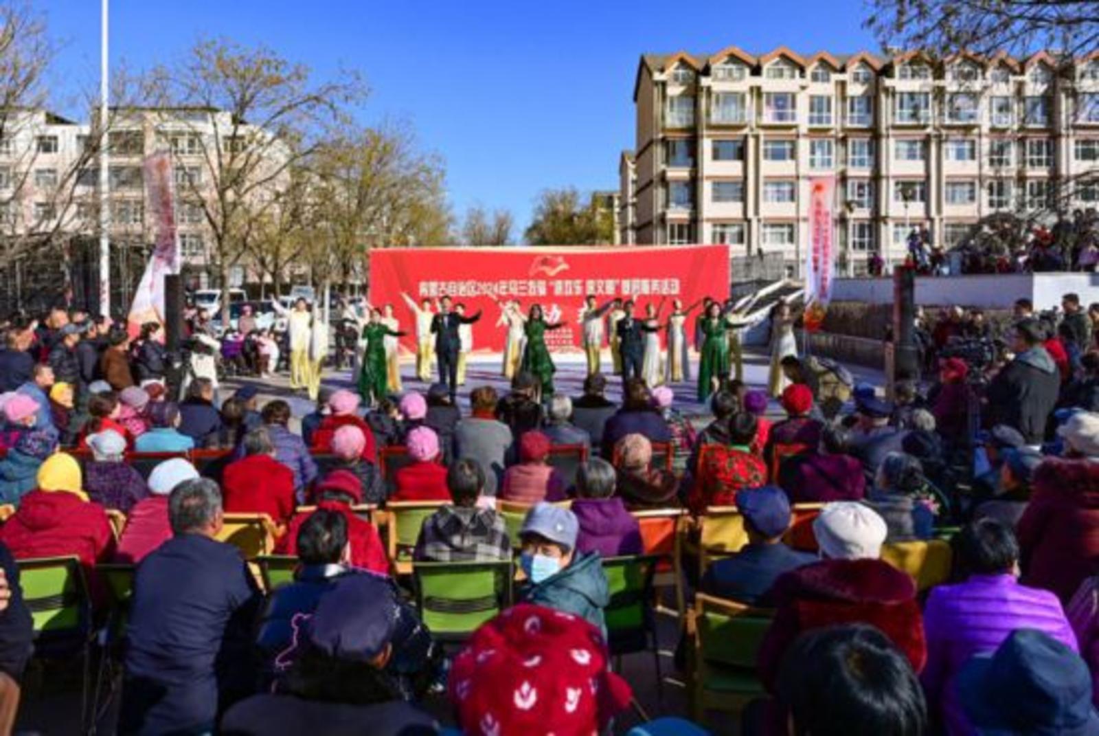 2024年11月21日,在内蒙古伊金霍洛旗阿勒腾席热镇,乌兰牧骑队员表演歌舞节目。新华社发(王正摄)