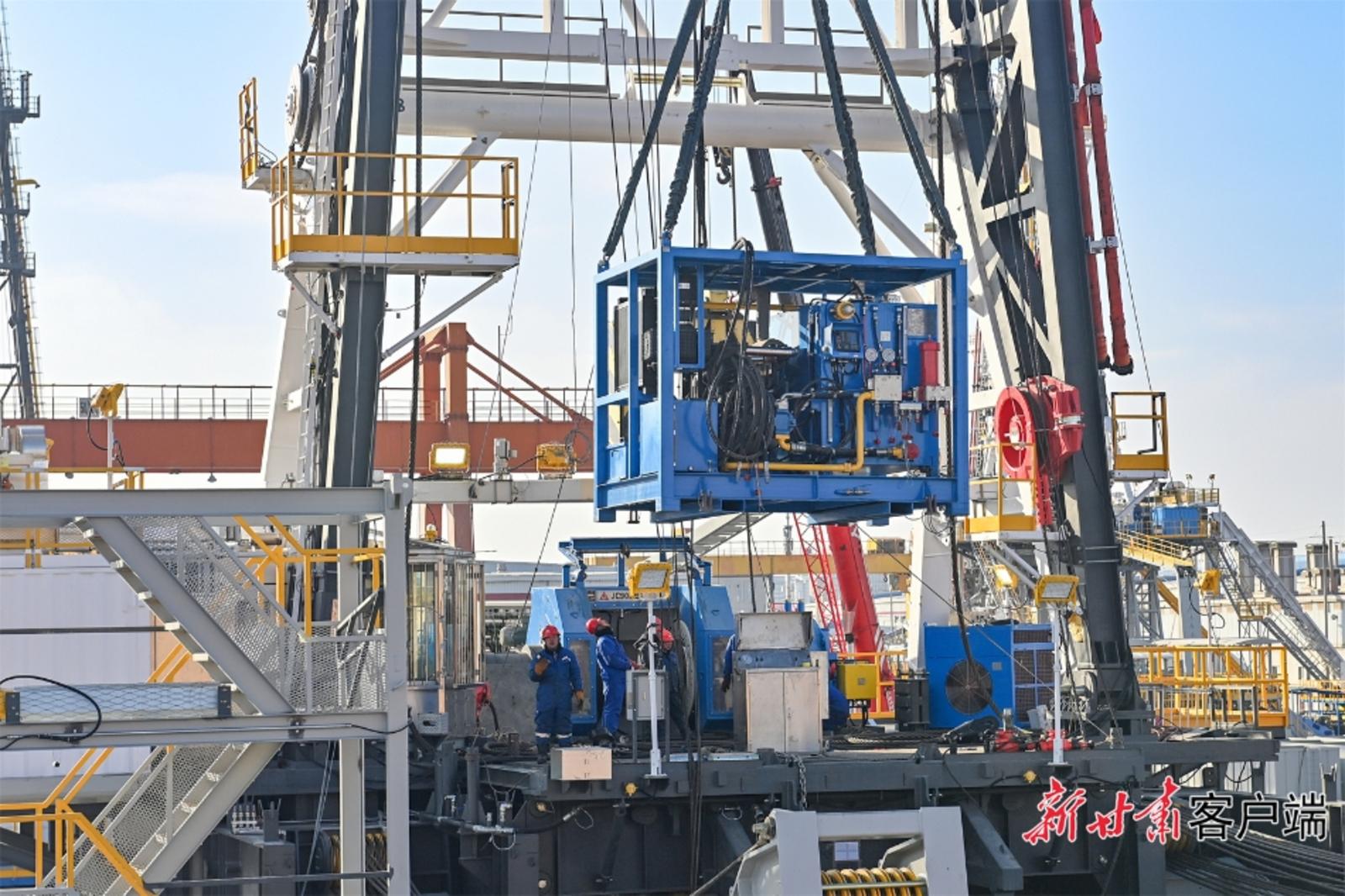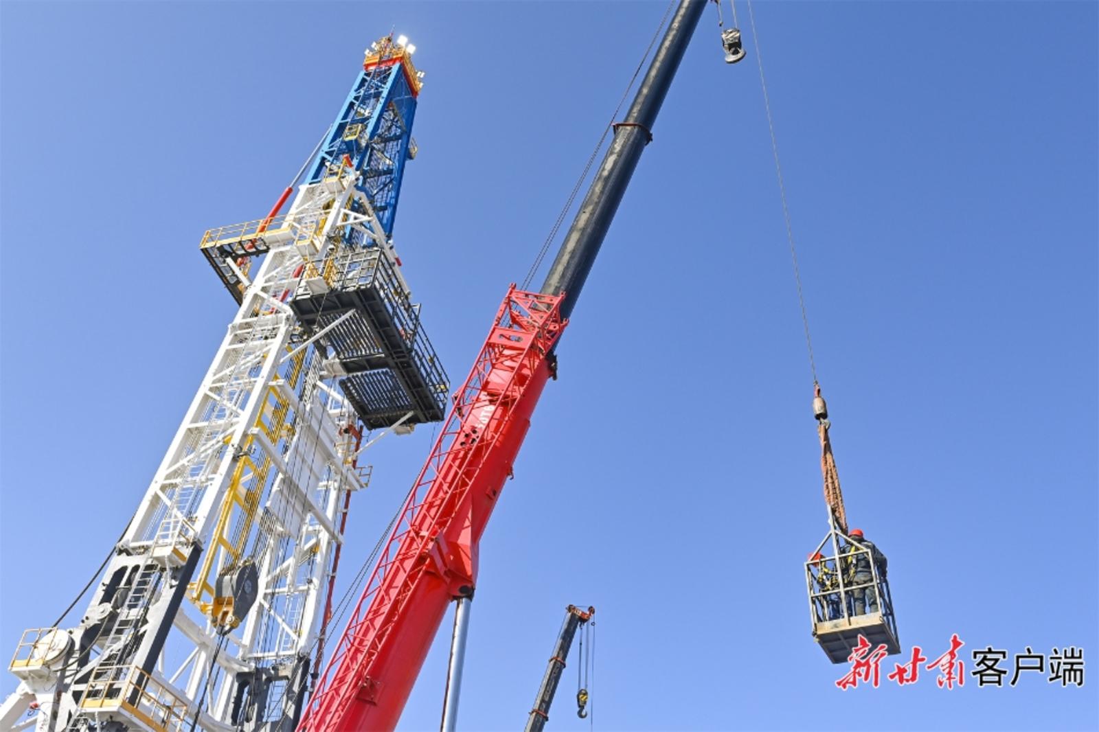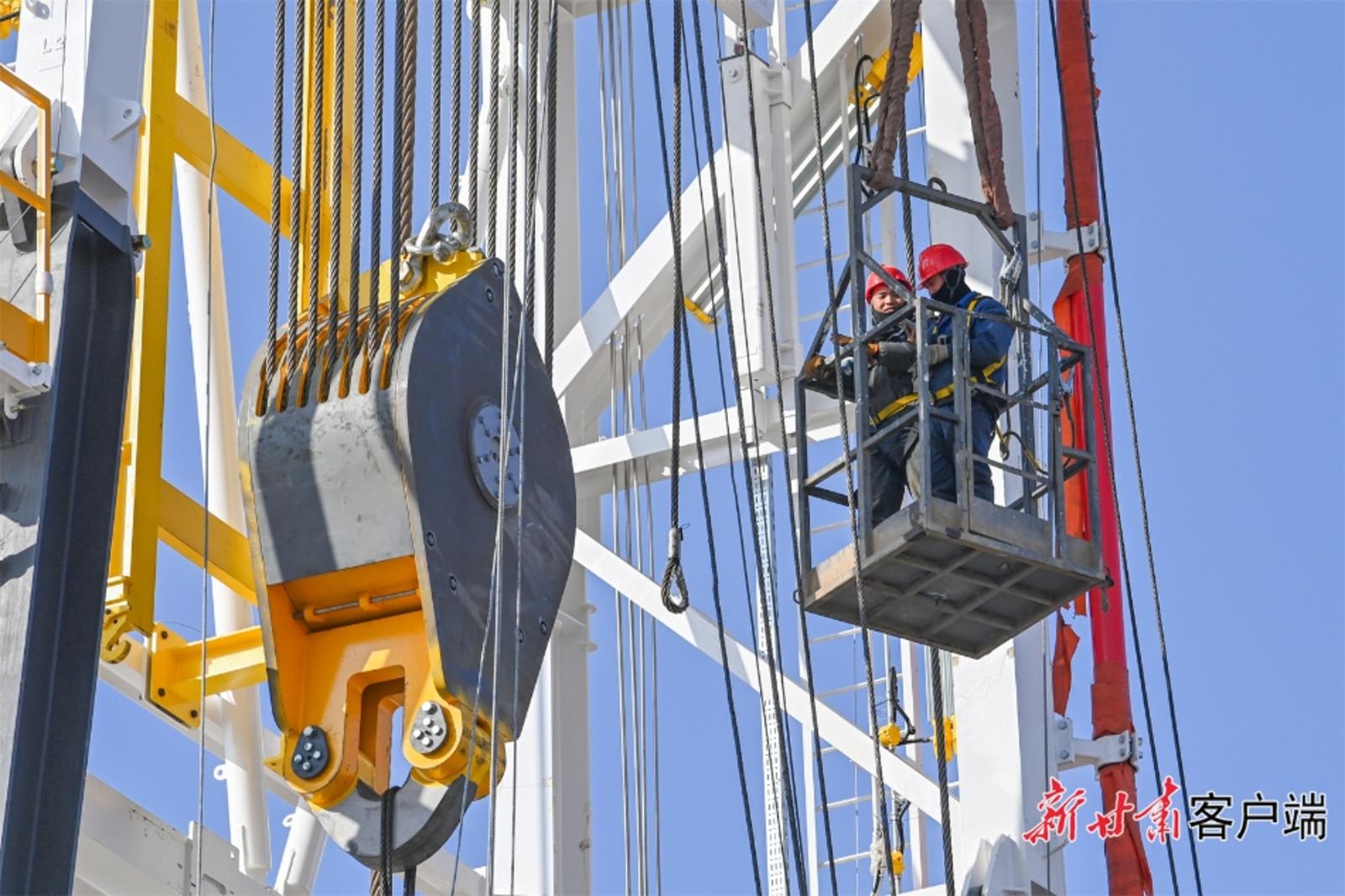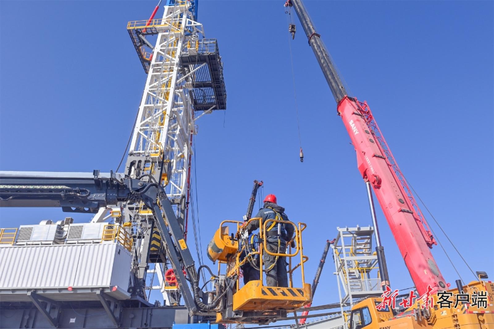 2月9日,在兰石集团装备公司3000HP超深井沙漠快速移运钻机实验现场,各单位协同克服工期紧、难度大、技术新等困难,项目首台钻机完成顶升、井架折头实验。