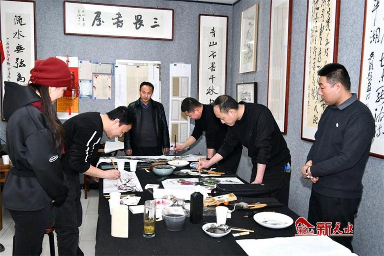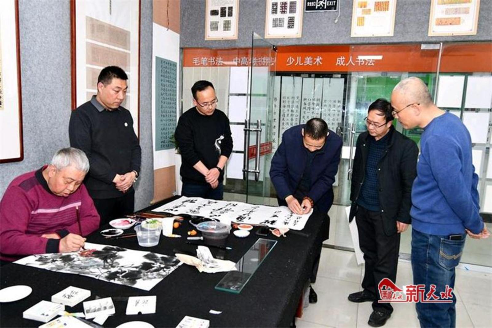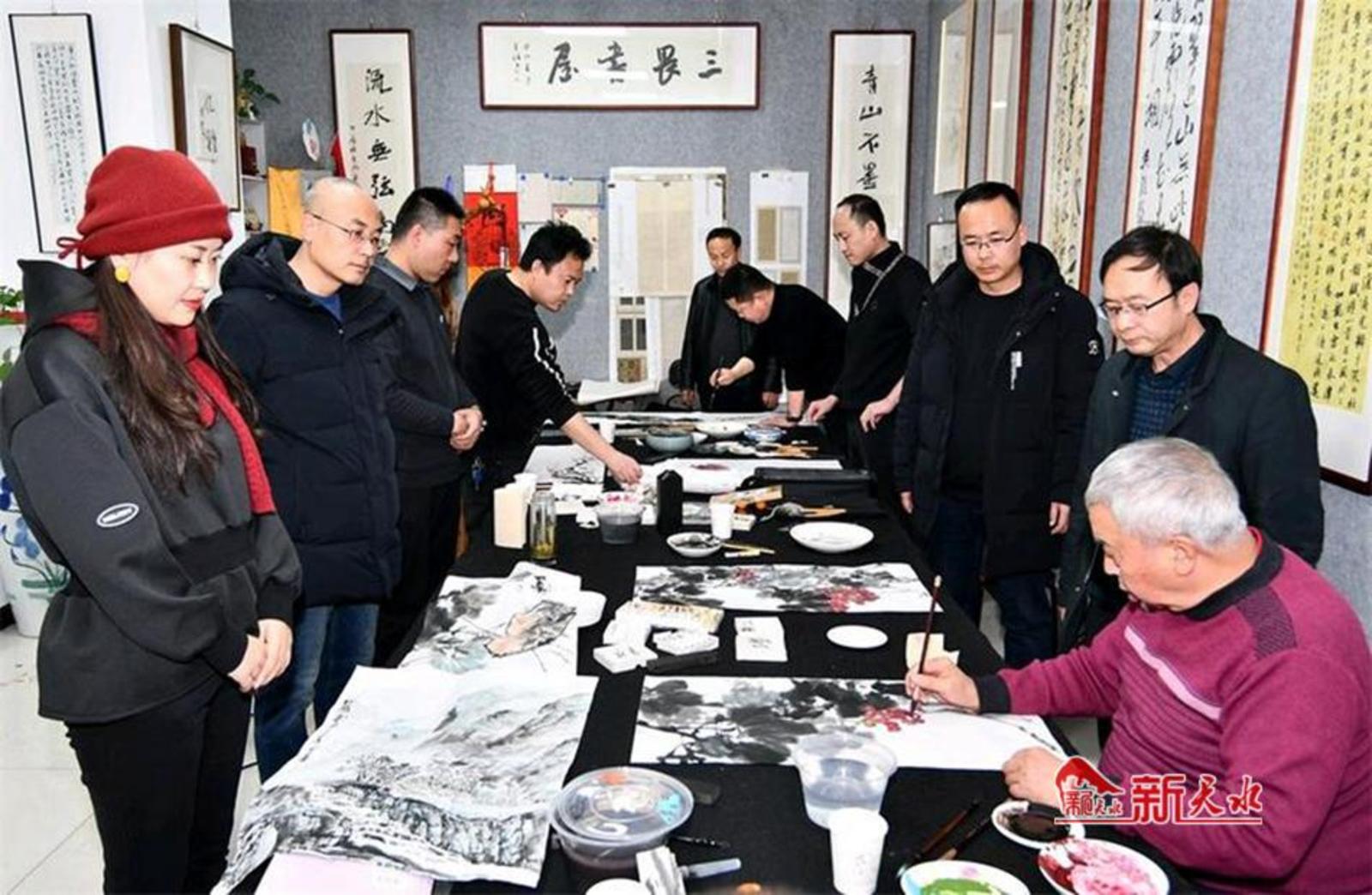 新天水讯 2月11日,麦积区三畏书屋书法工作室开展“丹青溢彩歌盛世、翰墨飘香贺新春”公益书画笔会。