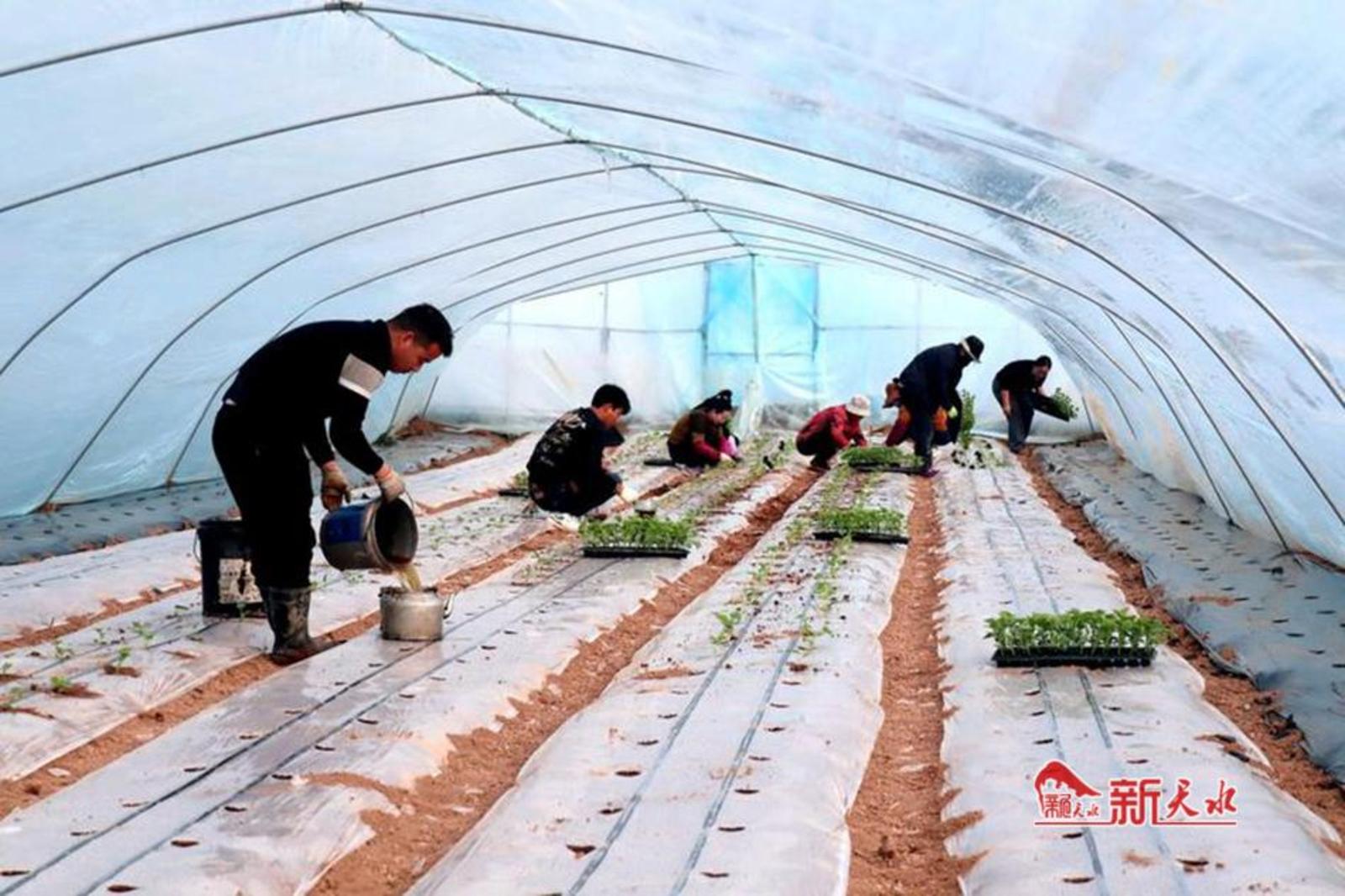 新天水讯【通讯员伏璐芳 王跟弟 孙雪 邵春】春回大地,农事渐忙。时下,走进秦安县西川镇安坪村白脆瓜大棚基地,只见一排排整齐的钢架大棚在阳光的照耀下熠熠生辉,棚内绿意涌动,农户们正抢抓农时,开展白脆瓜秧苗移栽工作,为今年的丰收播下“希望种”。