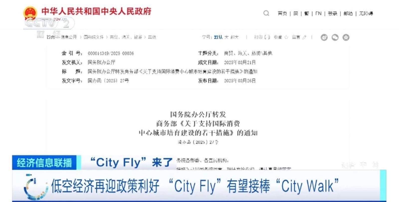 近日,国务院办公厅对外发布了转发商务部关于国际消费中心城市的最新政策。其中在“促进服务消费提质扩容”部分,提到了多项与低空经济有关的政策措施。未来城市上空的“City Fly”将怎么飞?