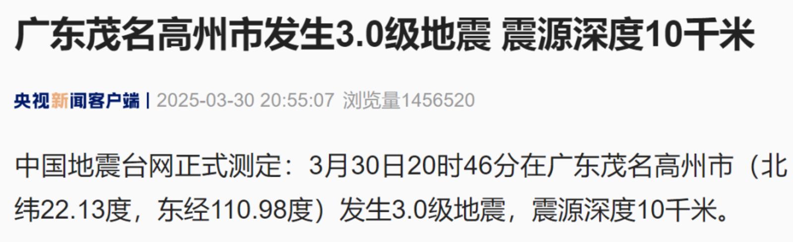 西藏拉萨市当雄县新疆阿克苏地区库车市广东茂名市高州市相继发生地震