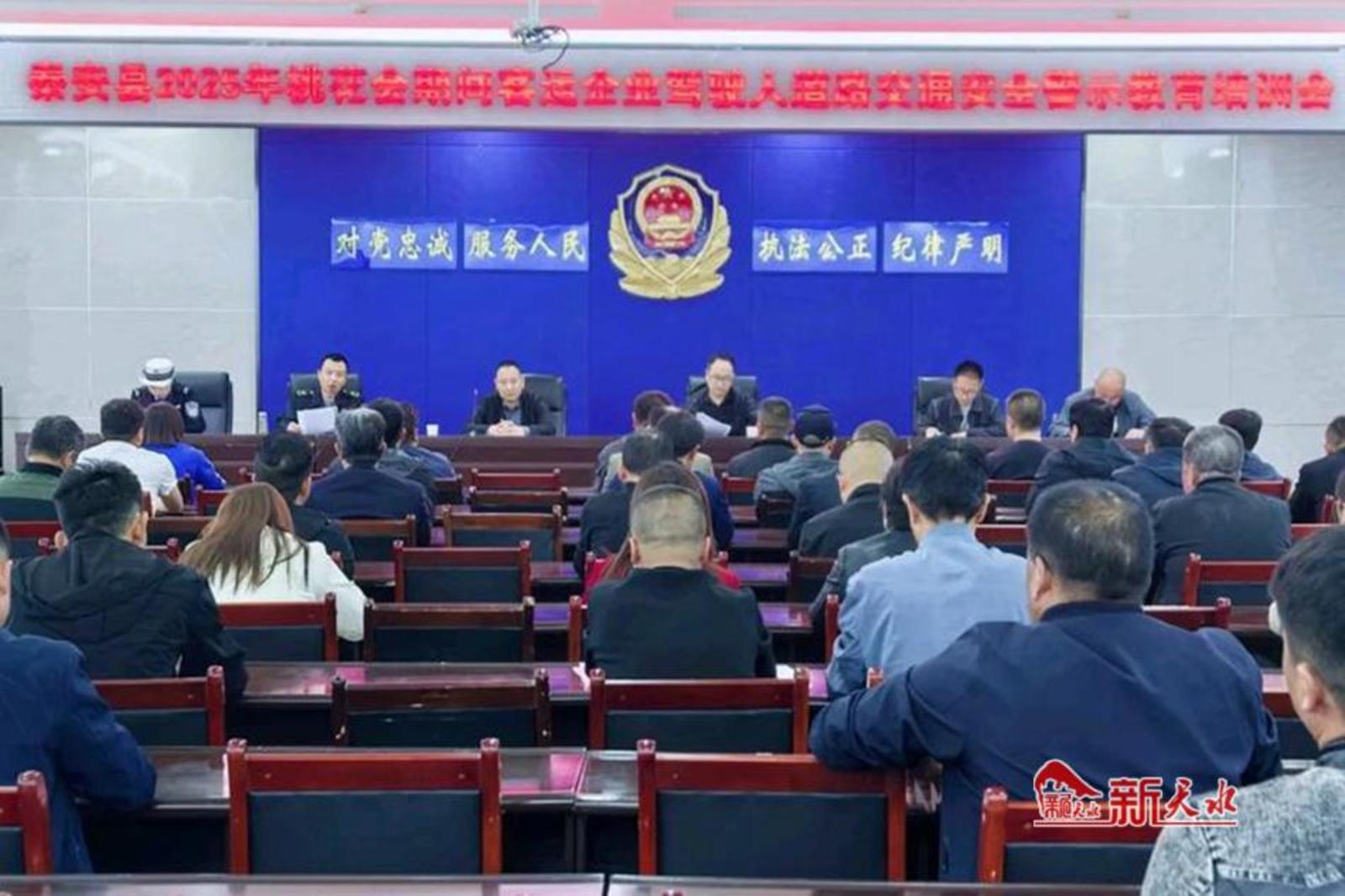 在秦安县2025年桃花会开园之际,秦安县交通运输局、县公安局交警大队联合召开2025年桃花会期间巡游出租车驾驶员交通安全警示教育培训会,对秦安县大地湾巡游出租汽车公司、甘肃天嘉交通运输集团有限公司秦安出租车分公司主要负责人、管理人员及巡游出租车驾驶员进行专题培训。