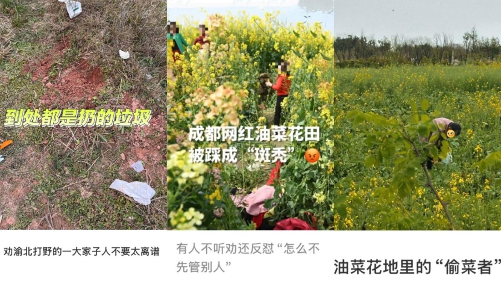 心急的已经出发了。最近的社交媒体上,有人拿着竹篮、小铲子,在田间地头挖得过瘾,配文“0元实现野菜自由”,不亦乐乎。而镜头之外,却是刚冒头的春笋被连根拔起,游客看见什么都要铲一铲 “先挖回去再说”。网红打卡地现场变成垃圾堆,比如四川绵阳的麦田就被踩得伤痕累累、成都彭州百元一斤的药材,被游客一脚踩毁。