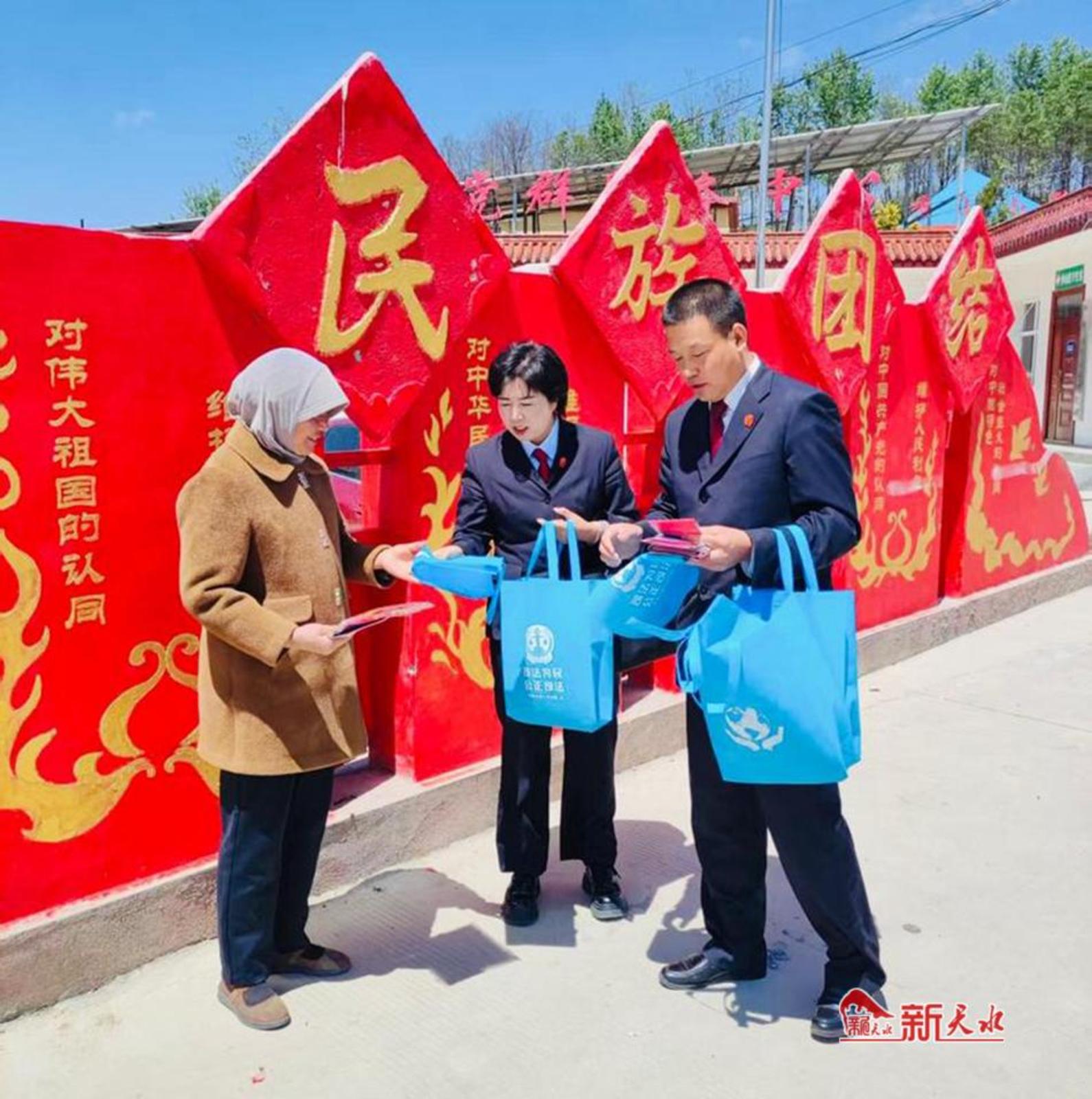 新天水讯 5月9日,张家川县人民法院聚焦企业和乡村法治需求,组织干警先后走进张家川回族自治县万通燃气供应有限公司、刘堡镇李山村开展“民法典进企业、进乡村”系列宣传活动,让法治春风浸润基层。