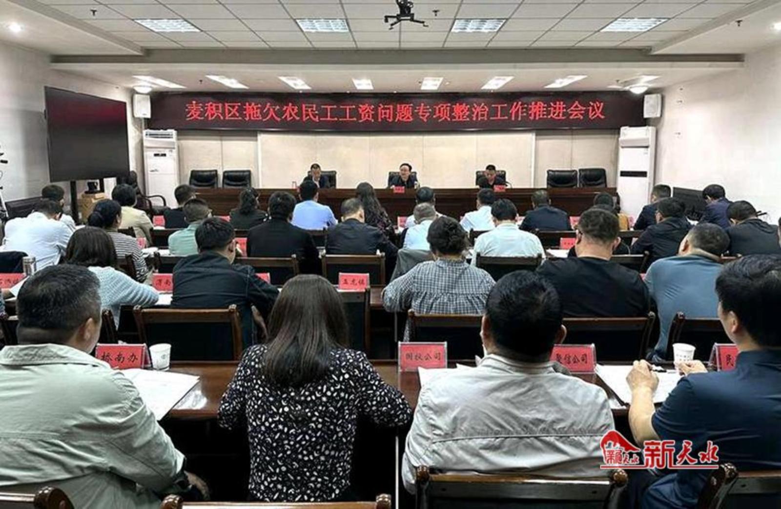 新天水讯 5月13日,麦积区召开拖欠农民工工资问题专项整治工作推进会议。