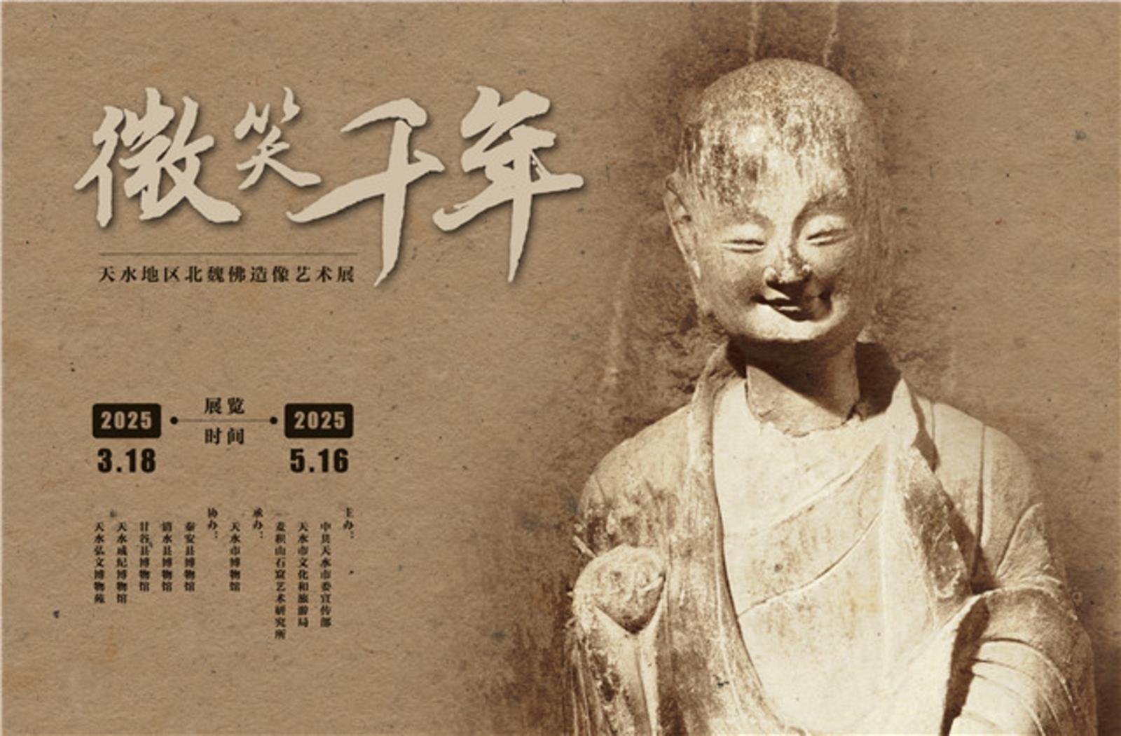 “微笑千年——天水地区北魏佛造像艺术展”,以麦积山石窟“东方微笑”为核心,重点展现天水地区北魏时期佛教文化发展脉络,凸显天水地区在佛教发展史上的重要地位,让这座跨越千年的石窟艺术宝库焕发出新的生机与活力。展览以天水地区北魏时期佛教造像作为切入点,共分“微笑千年”“瑞像天成”“丝路交融”“保护与传承”四个单元,共展出天水地区北魏时期单体造像、造像塔与造像碑、拓片、钱币、麦积山石窟造像及复原艺术品等文物102件套。