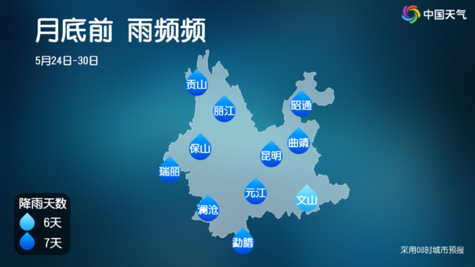 江南和华南的雨只是“小打小闹”,未来三天,云南才是全国降雨最强的区域,甚至一直到本月底前,云南都会是“雨频频”的状态,多地降雨日数或达6至7天。