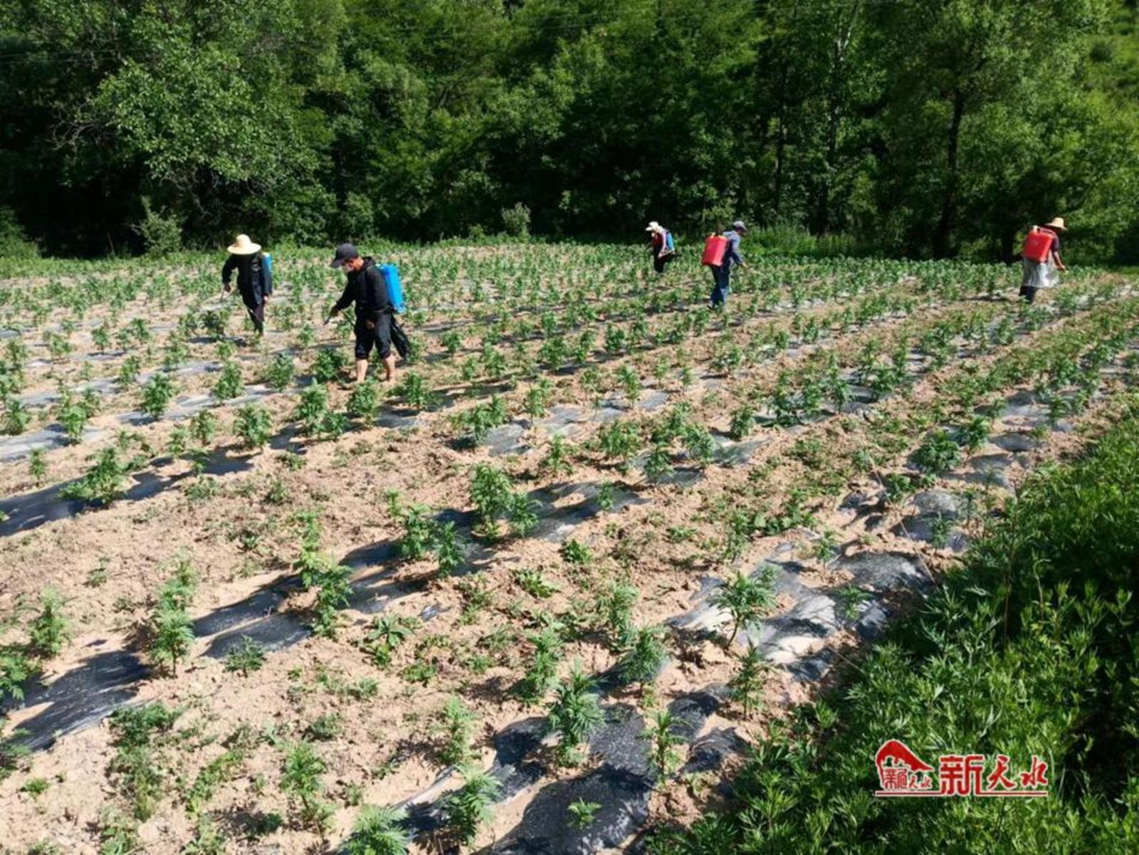 新天水讯 时下,正值中药材夏季管护的关键时期,走进清水县陇东镇中药材种植基地,一片绿意盎然,村民正在对款冬花、七月菊、黄芪等中药材进行除草、放苗、施肥、病虫害防治,生机勃勃的“致富田园”里,呈现出一幅产业兴旺、丰收在望的美好景象。