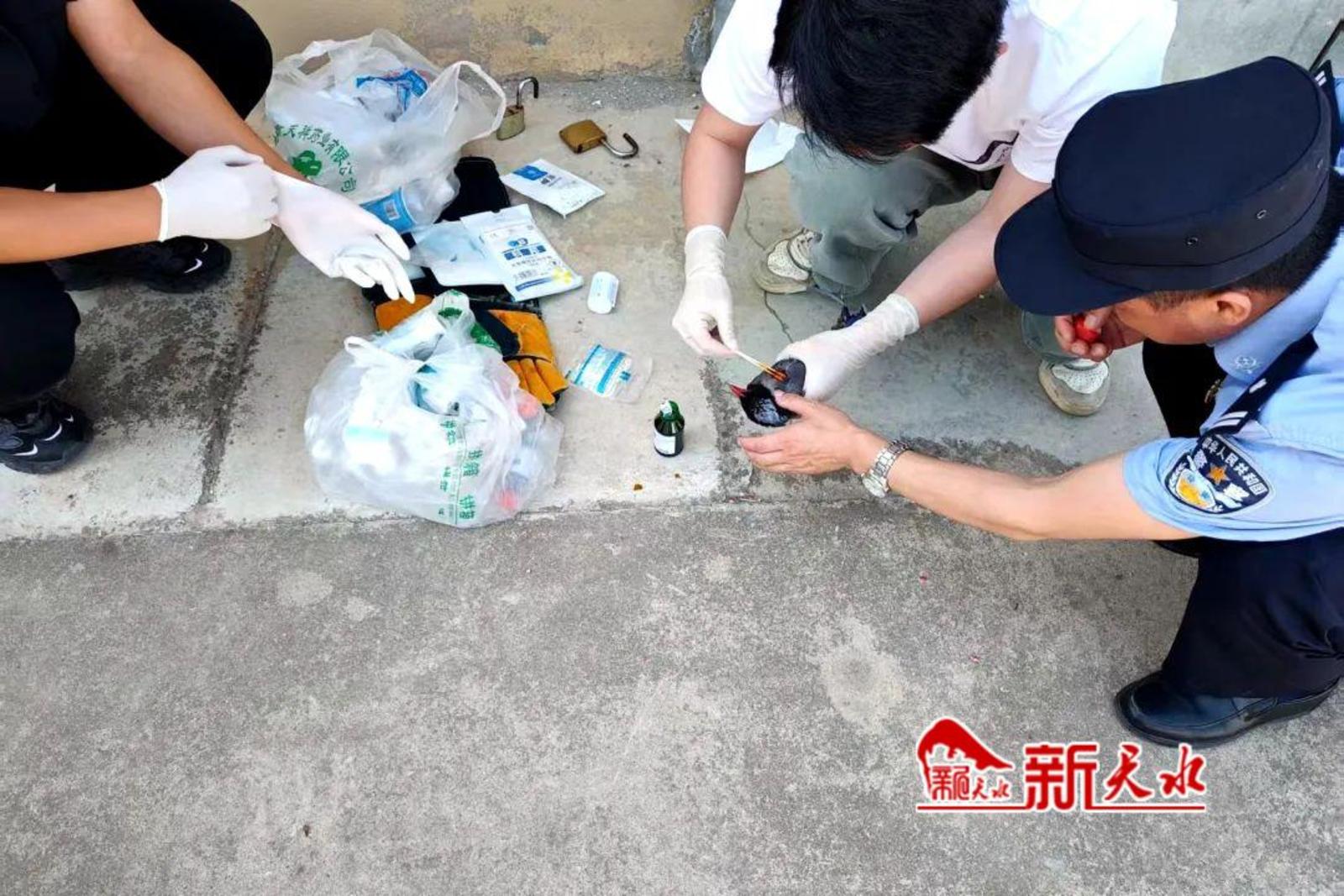 不久前,有热心群众在清水县轩辕湖公园发现一只无法飞行的红嘴蓝鹊,当即报警求助。县公安局森林警察大队迅速赶赴现场,将受伤鸟类妥善安置后,立即联系野生动物保护部门实施专业救治。