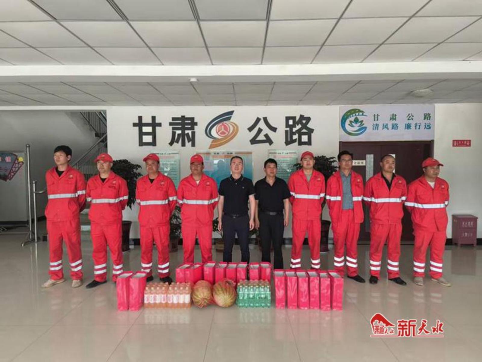 新天水讯 6月17日,张家川公路段工会开展“夏送清凉”慰问活动,为坚守一线的养路工送去组织的关怀。