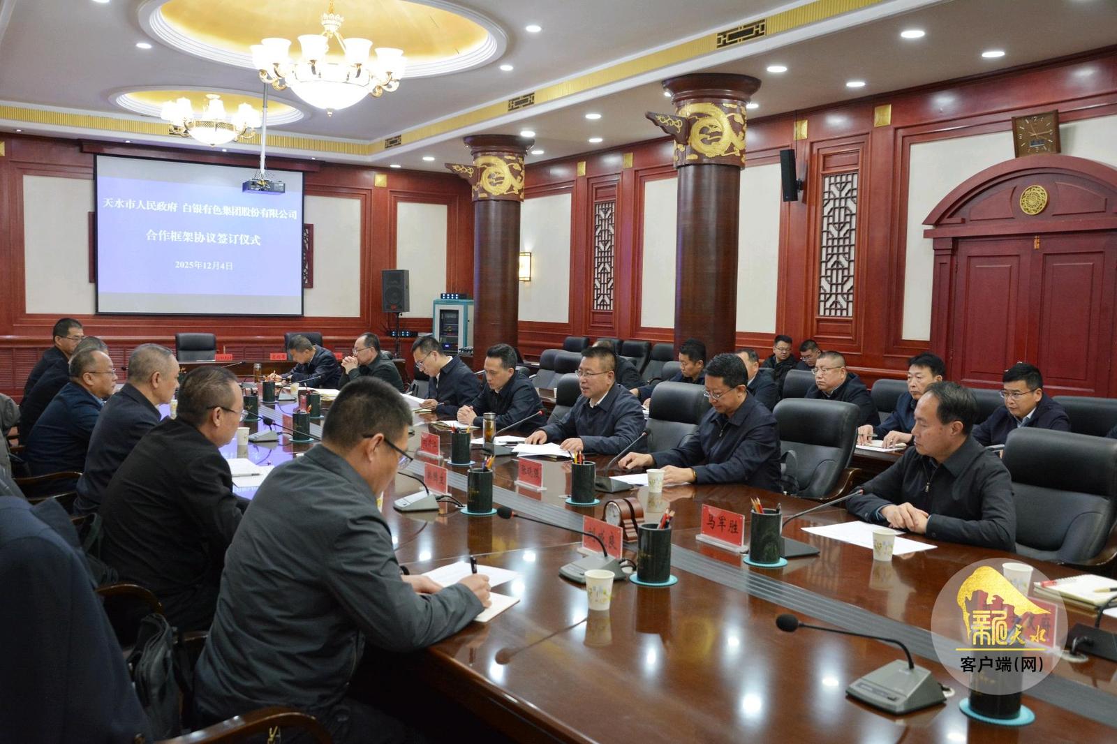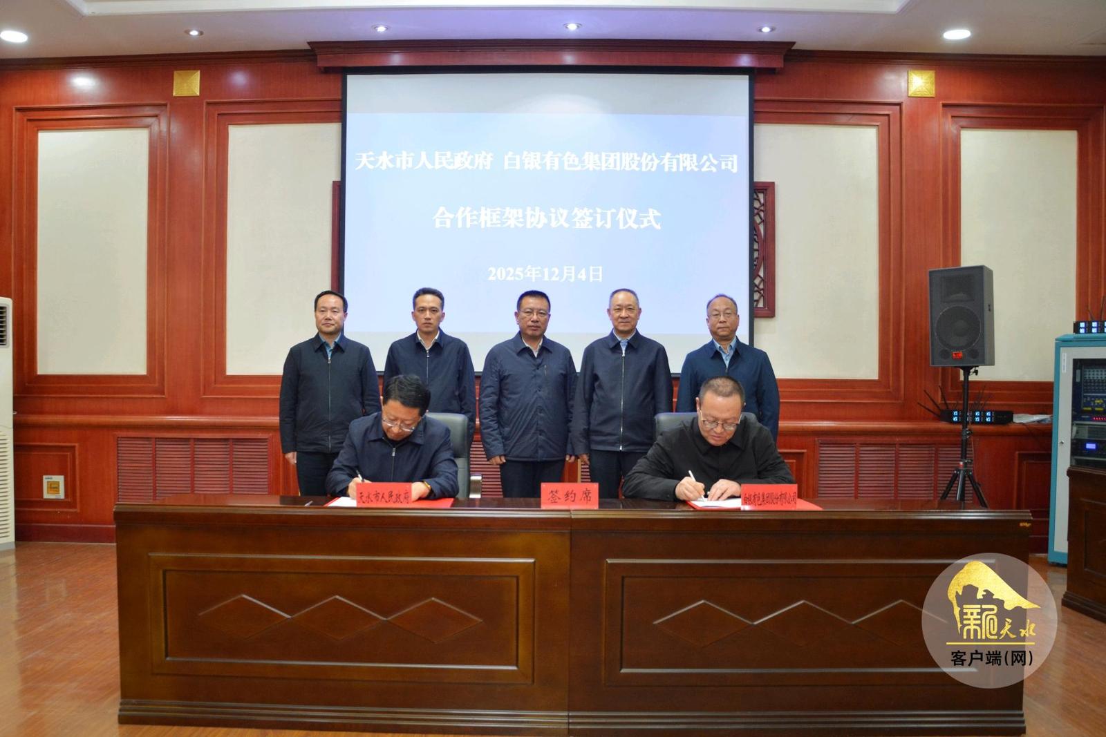 新天水讯【天水融媒记者 马凯】12月4日,天水市政府与白银有色集团股份有限公司签署合作框架协议。