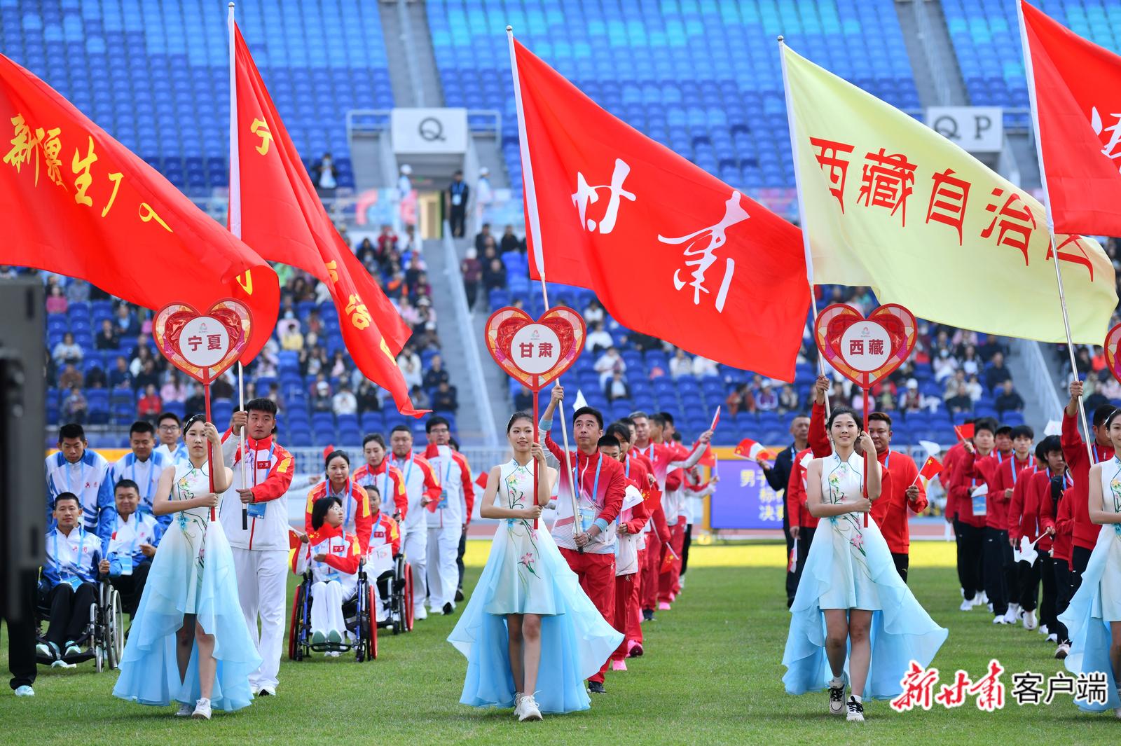 田径项目比赛开幕式现场。文中图片均由新甘肃客户端记者万及敏摄。