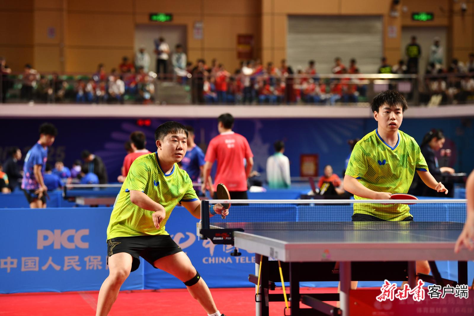 TT10男子双打决赛,连浩、李泽鑫3:1战胜湖北队夺冠。