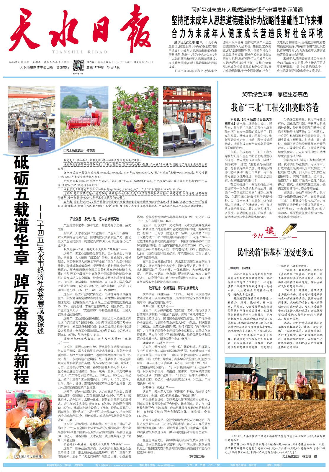 展望“十五五”,天水已蓄势待发。未来,天水将牢记嘱托、感恩奋进,聚焦“三区一地一中心”发展定位,深入推进“破局突围、加速追赶、重铸辉煌”行动,勇担使命、接续奋斗,在新征程上不断谱写中国式现代化天水实践新篇章。