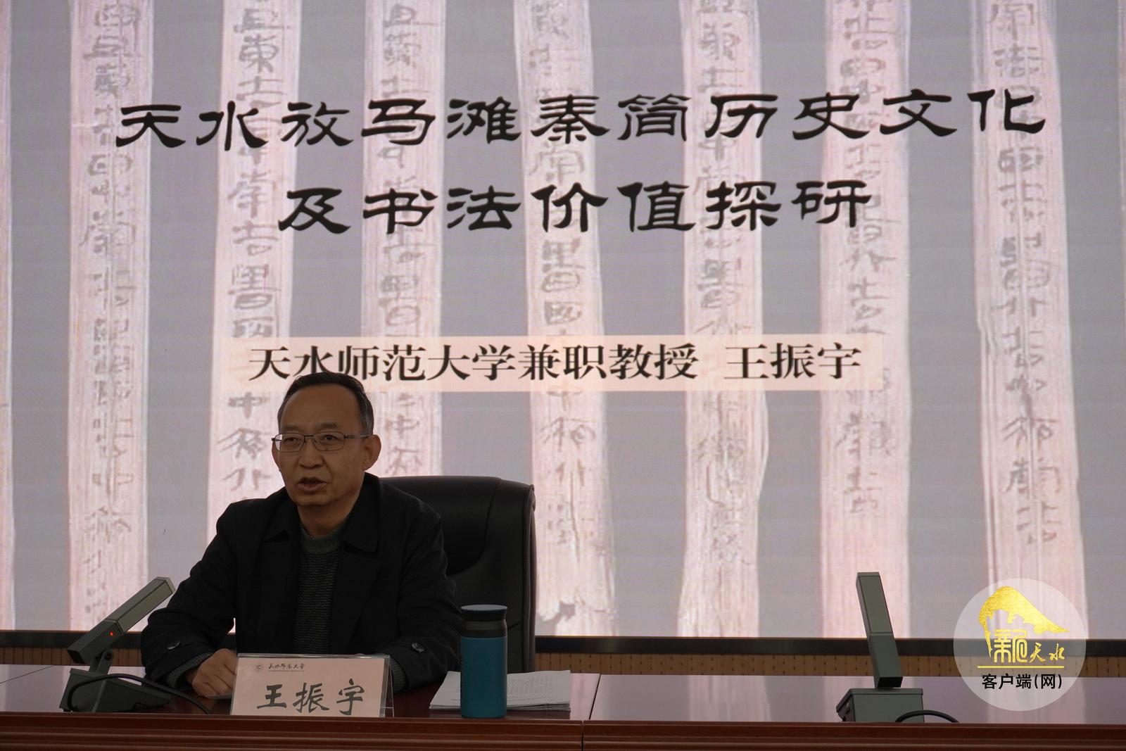 新天水讯【天水融媒记者 马仓仓 见习记者 何海静】12月18日下午,天水师范大学举办了“天水放马滩秦简历史文化及书法价值探研”专题讲座,特邀天水市政协原副主席、一级巡视员,天水师范大学兼职教授王振宇主讲。